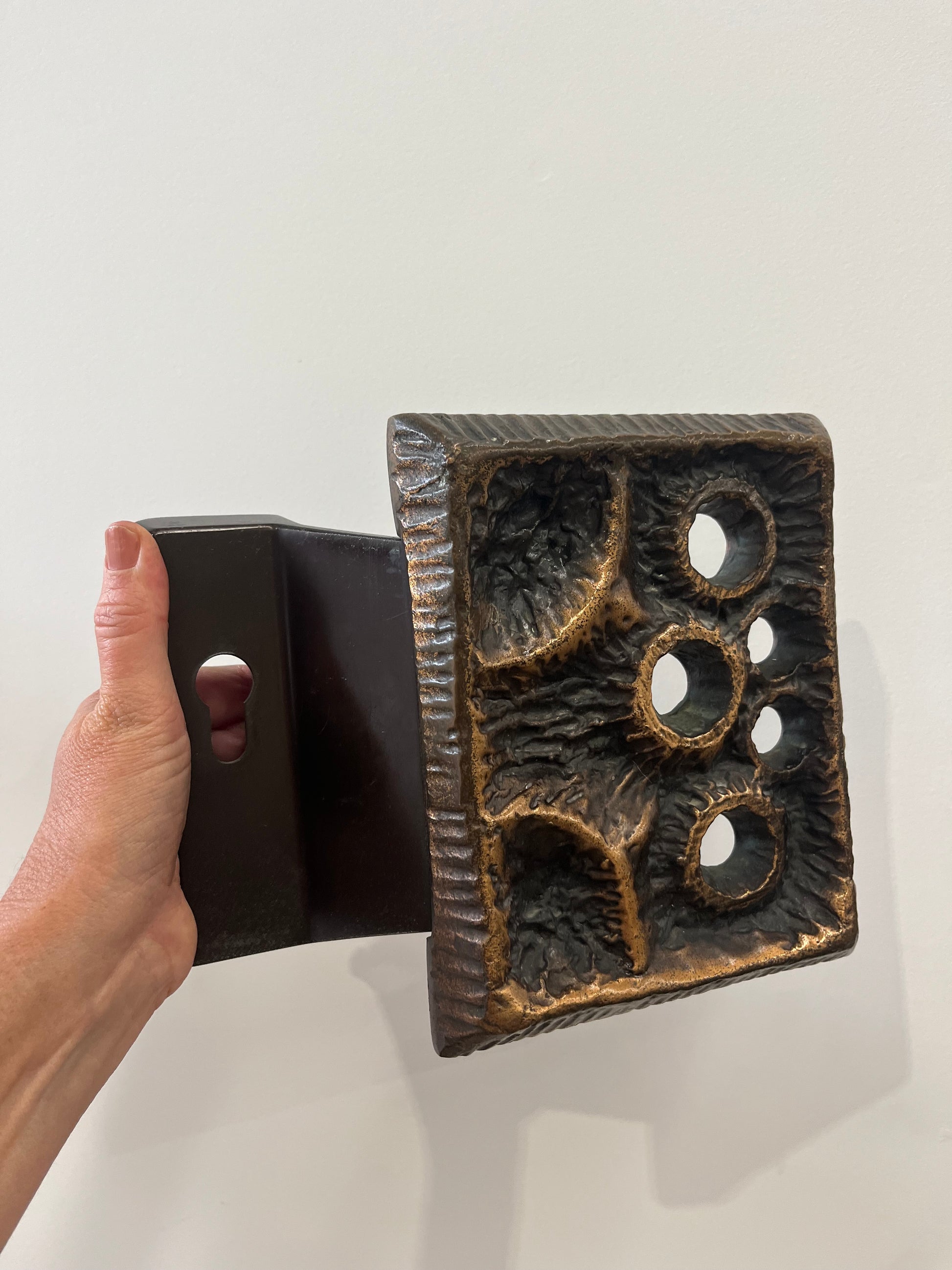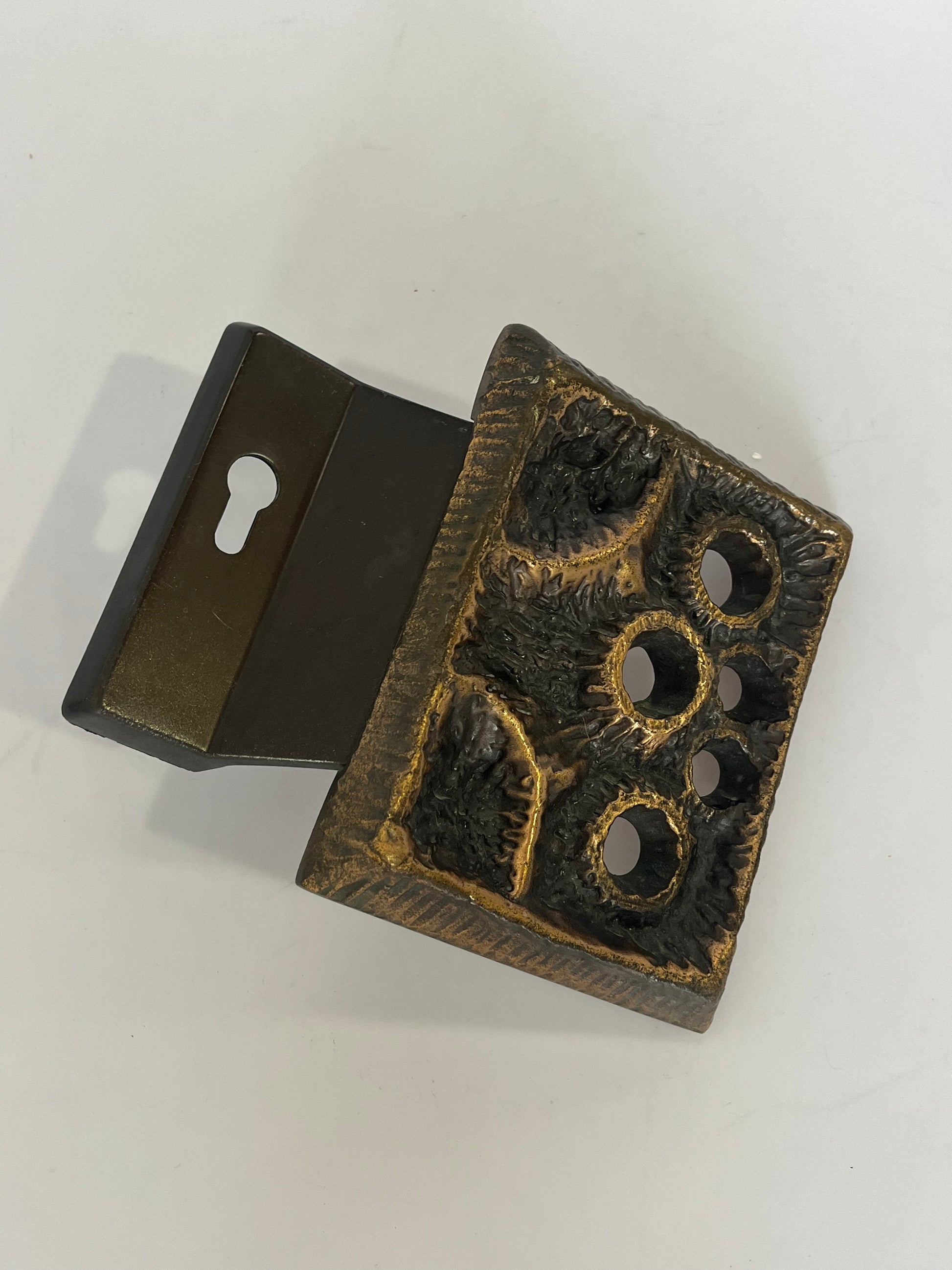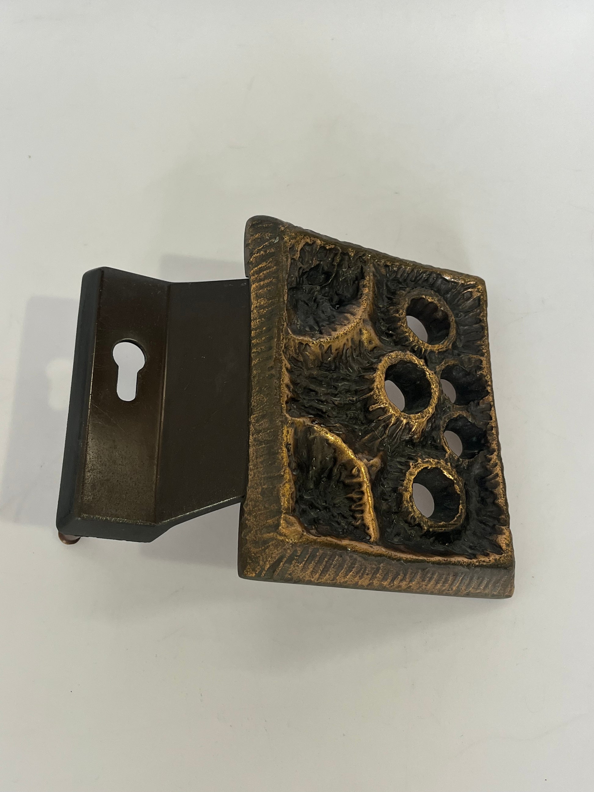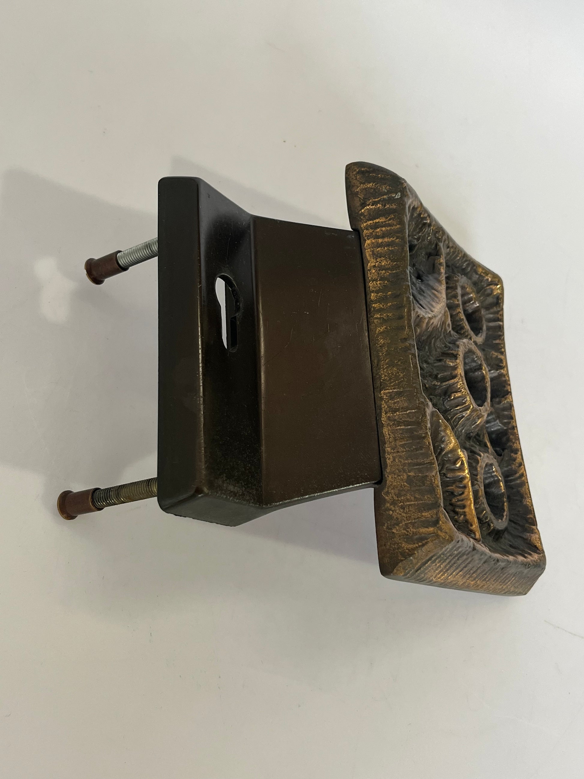 Unique 1970’s Brutalist door pull handle. West German mid century design in brass.