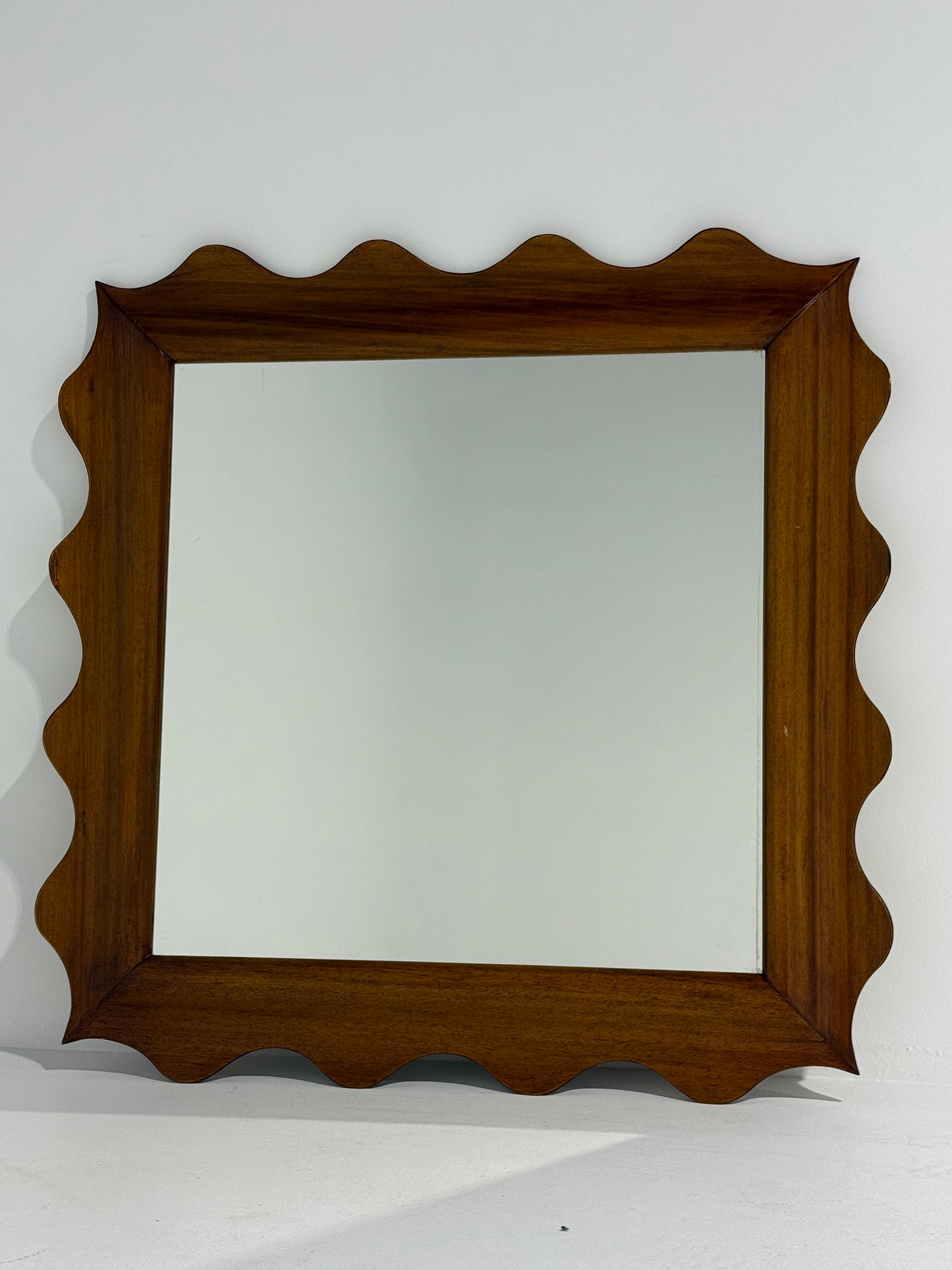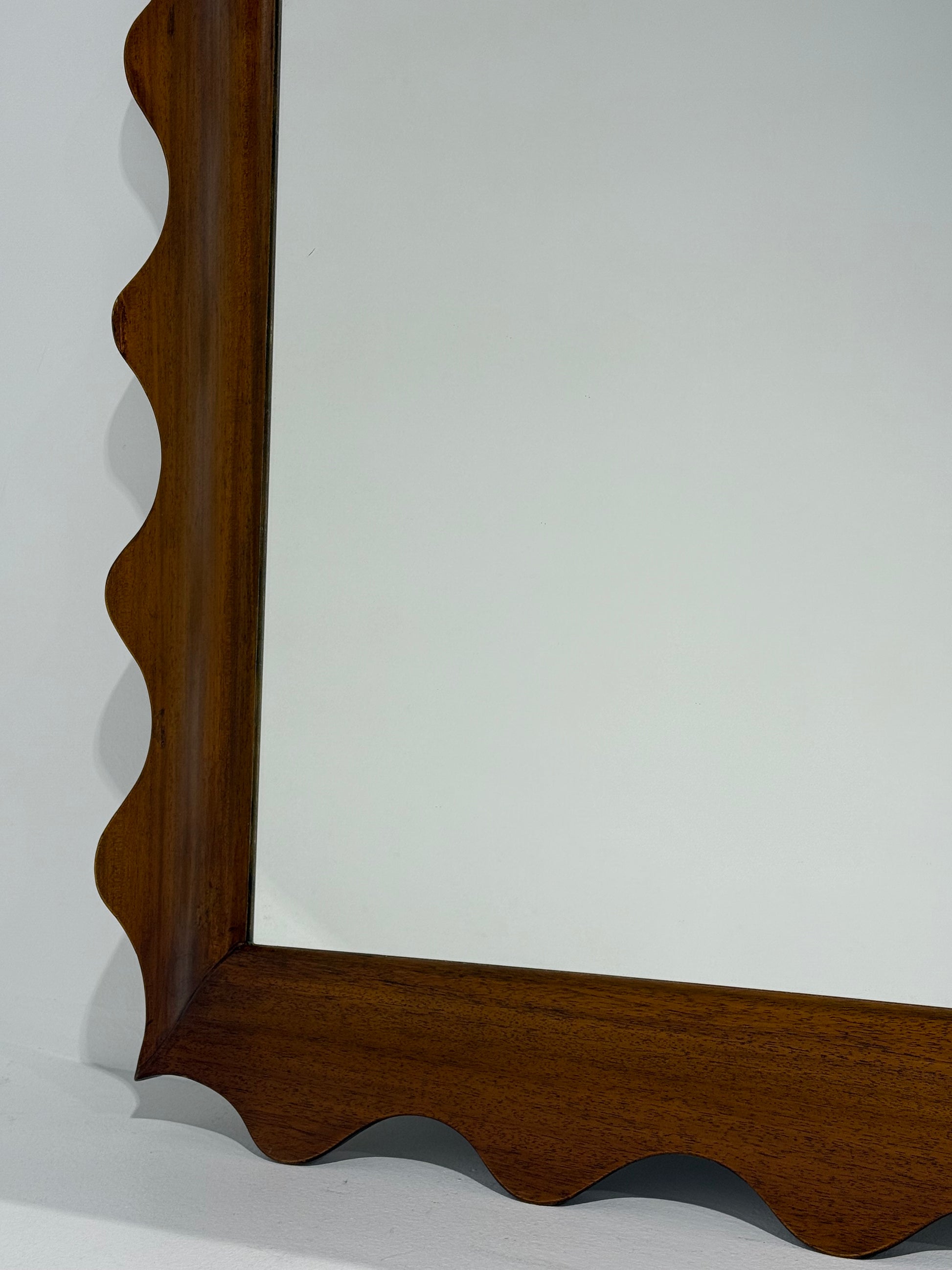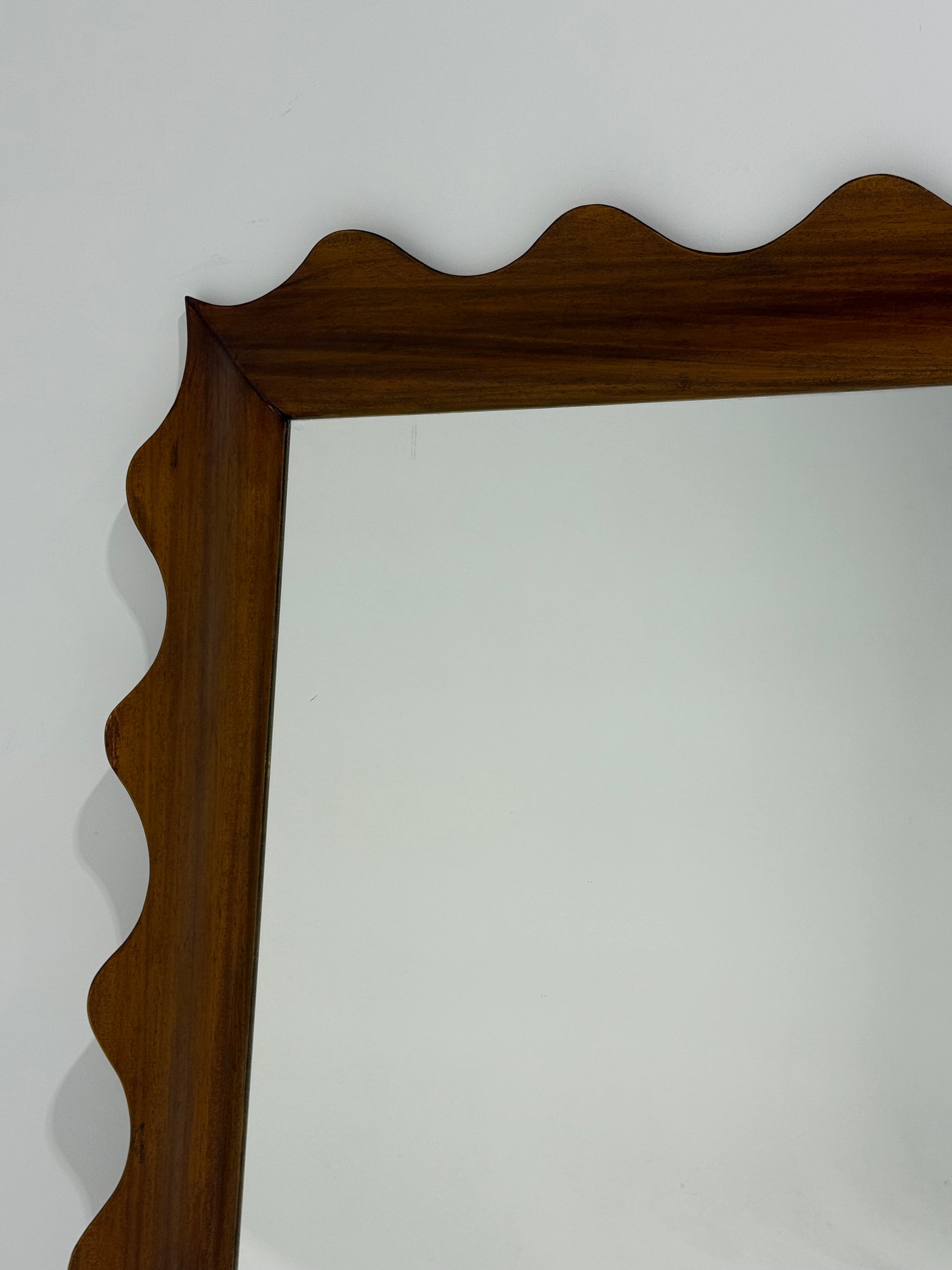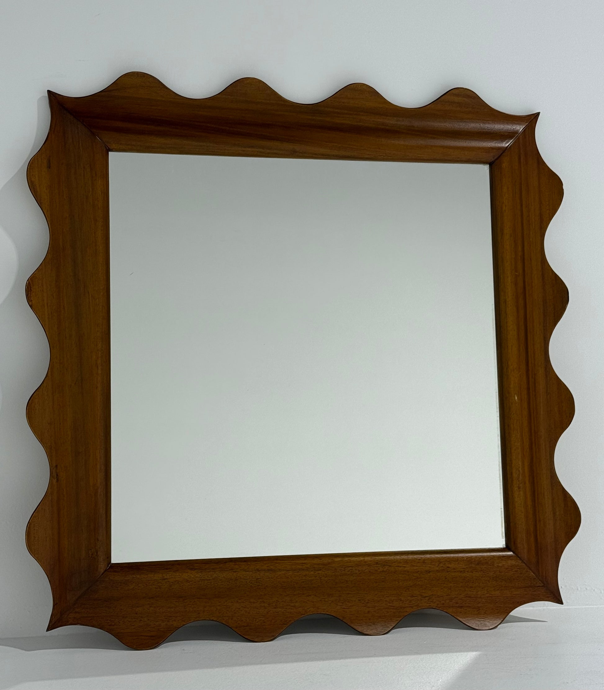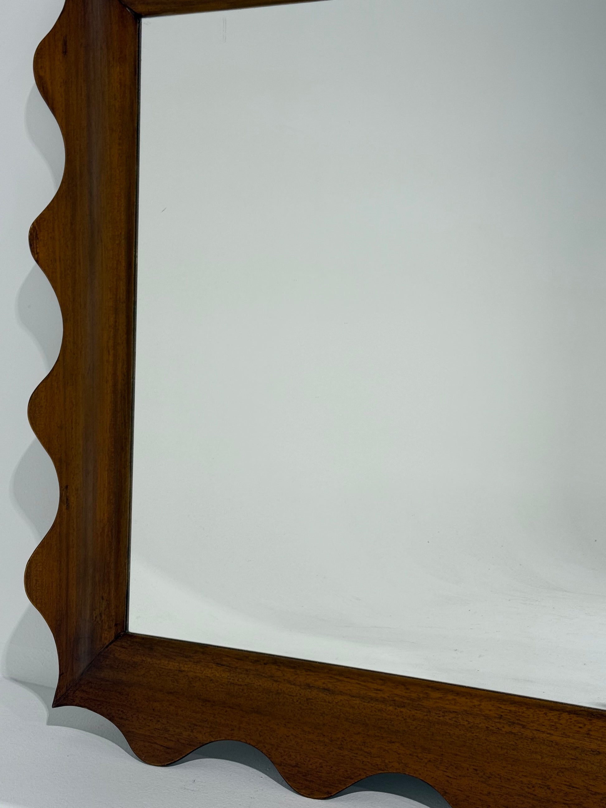 Exceptional Italian oak mirror. Incredible design with a carved scalloped frame. Exquisite craftsmanship and a rare piece of Italian contemporary design.