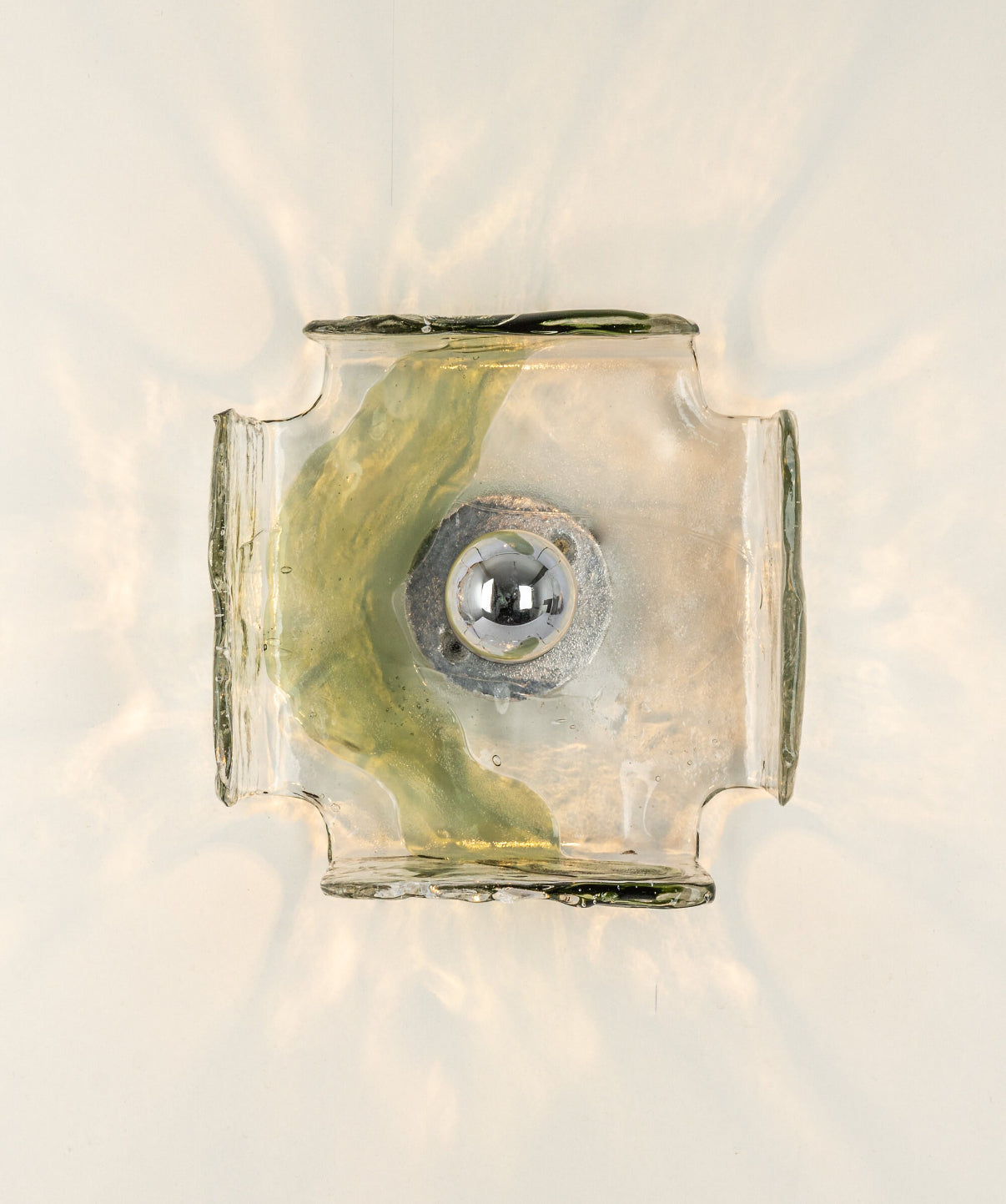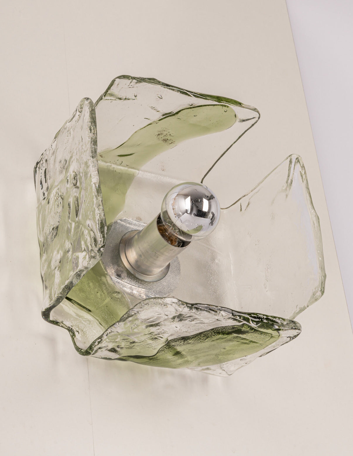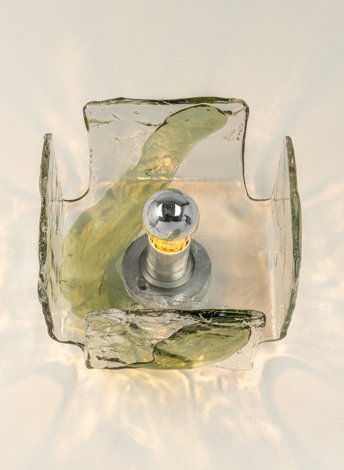 Incredible Murano glass wall light designed by Carlo Nason for JT Kalmar. Thick glass in transparent and green glass. Circa 1960’s. Original label intact.