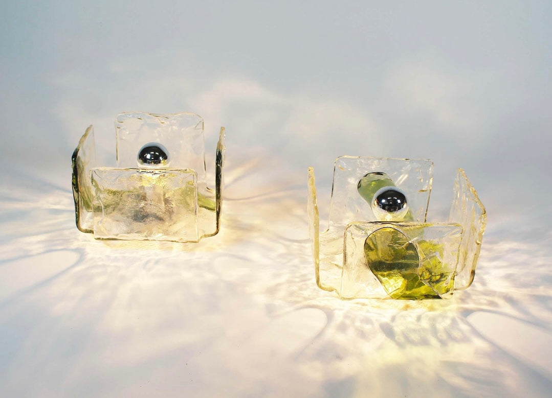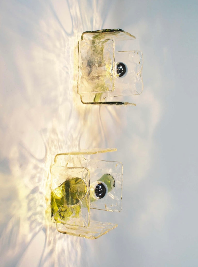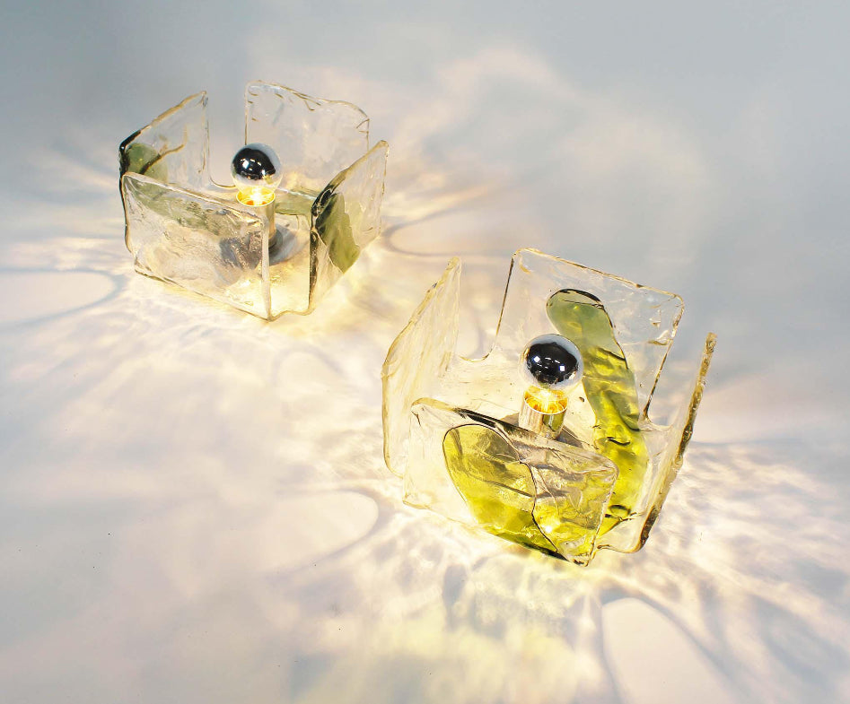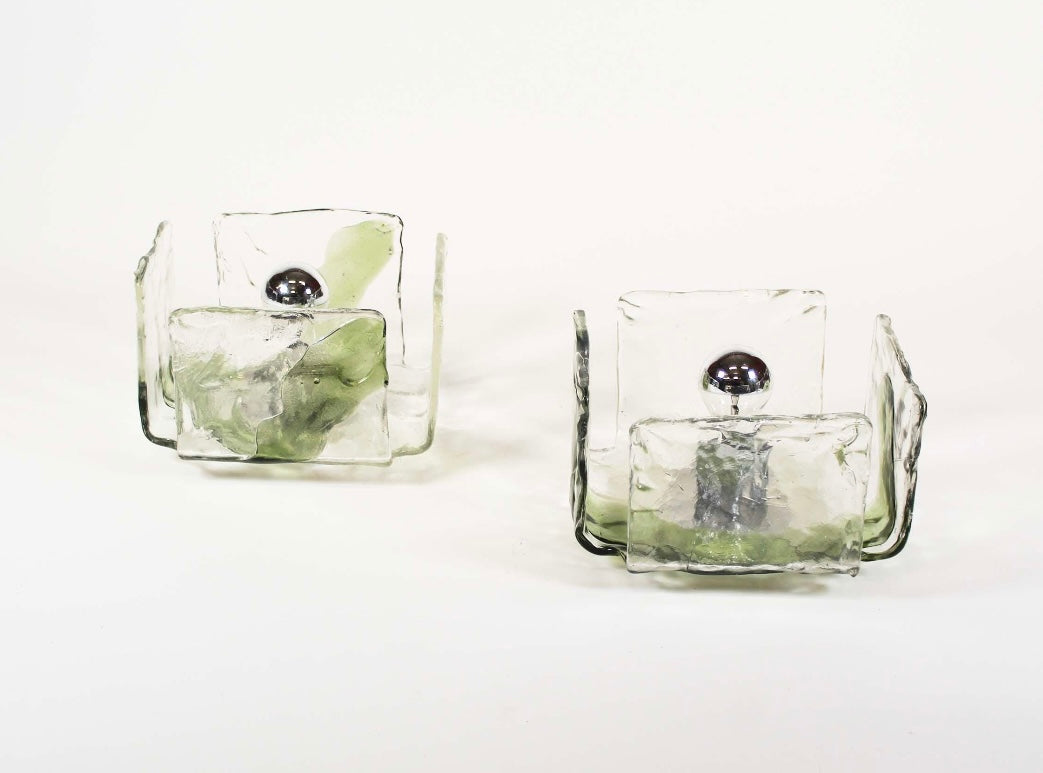 Incredible Murano glass wall light designed by Carlo Nason for JT Kalmar. Thick glass in transparent and green glass. Circa 1960’s. Original label intact.