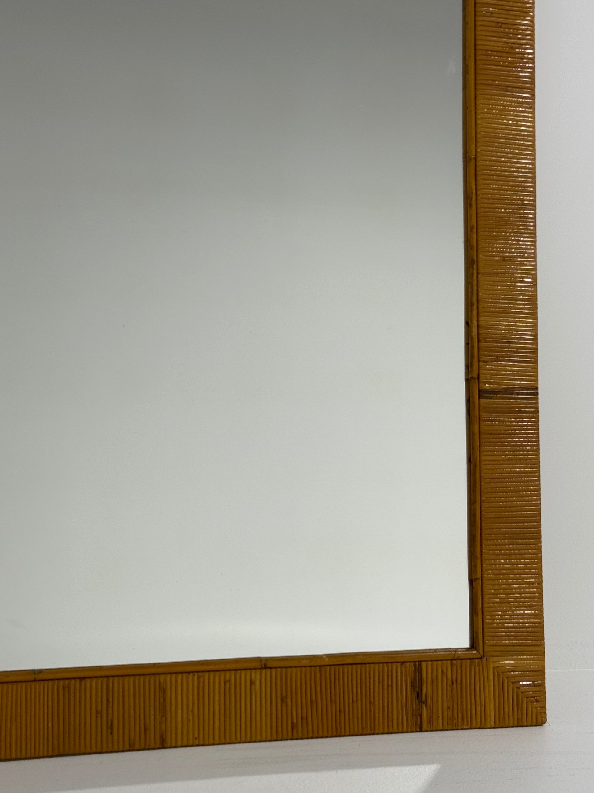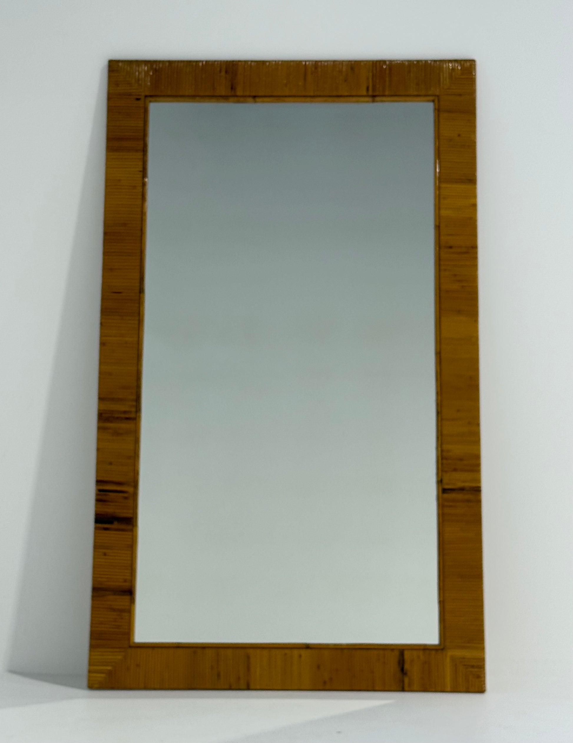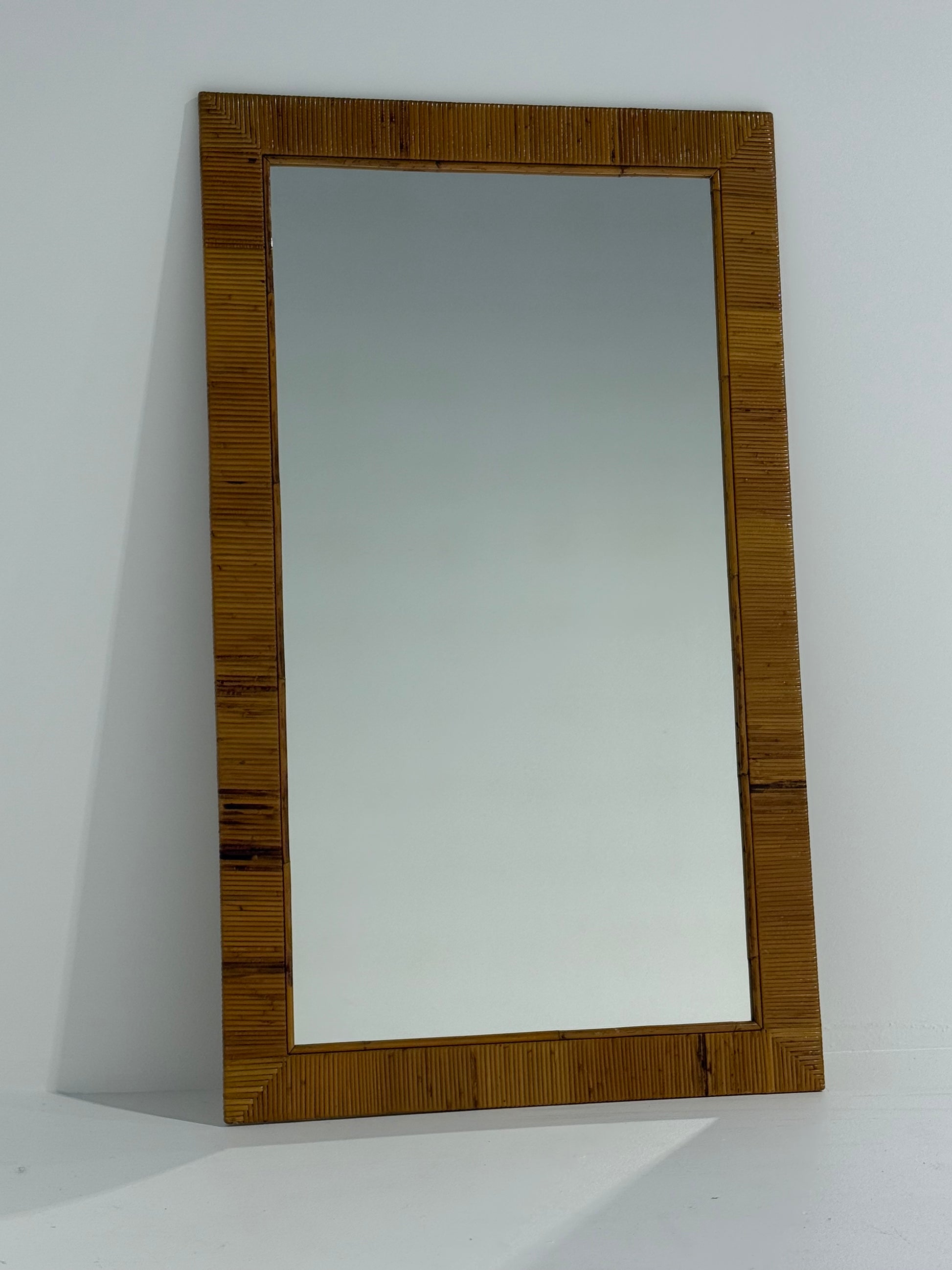 Extra large vintage Pencil Reed style rattan mirror. Circa 1970’s. Rare full length size with bound rattan frame.