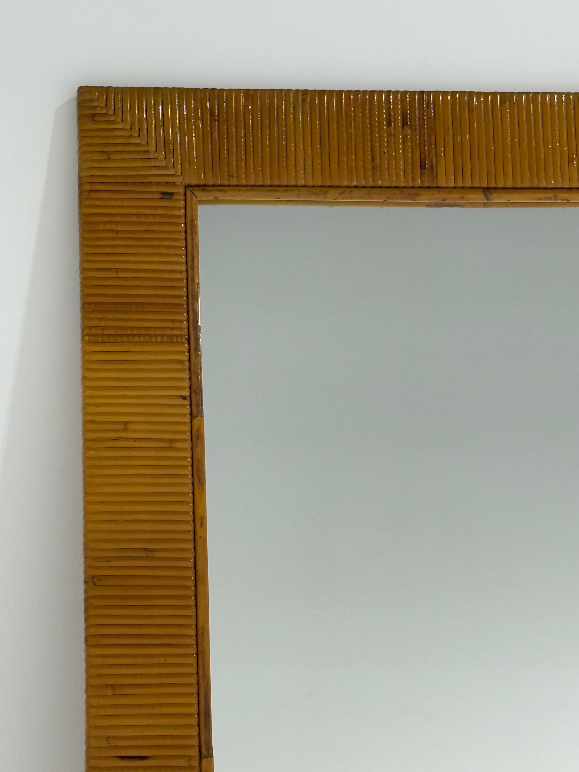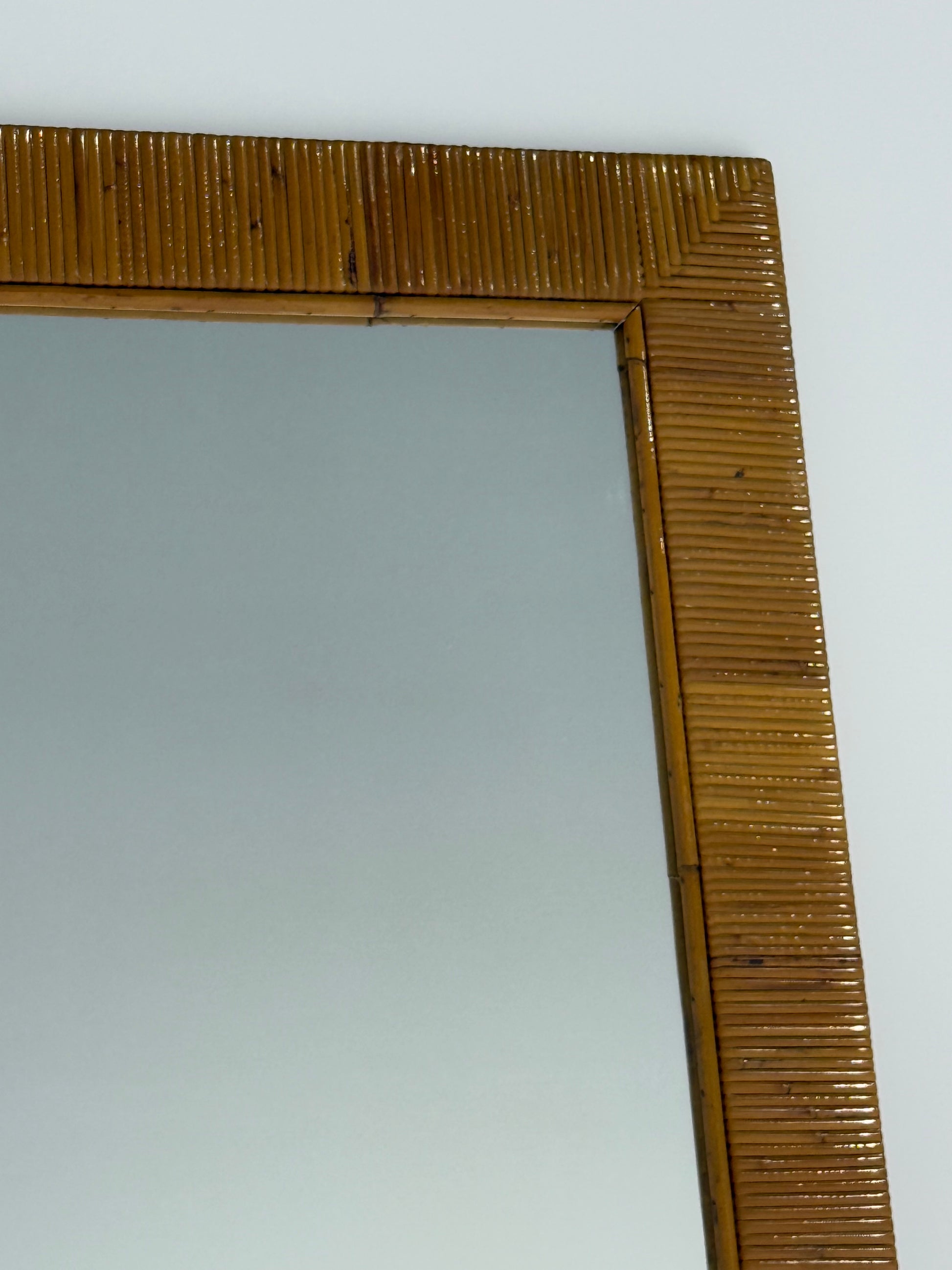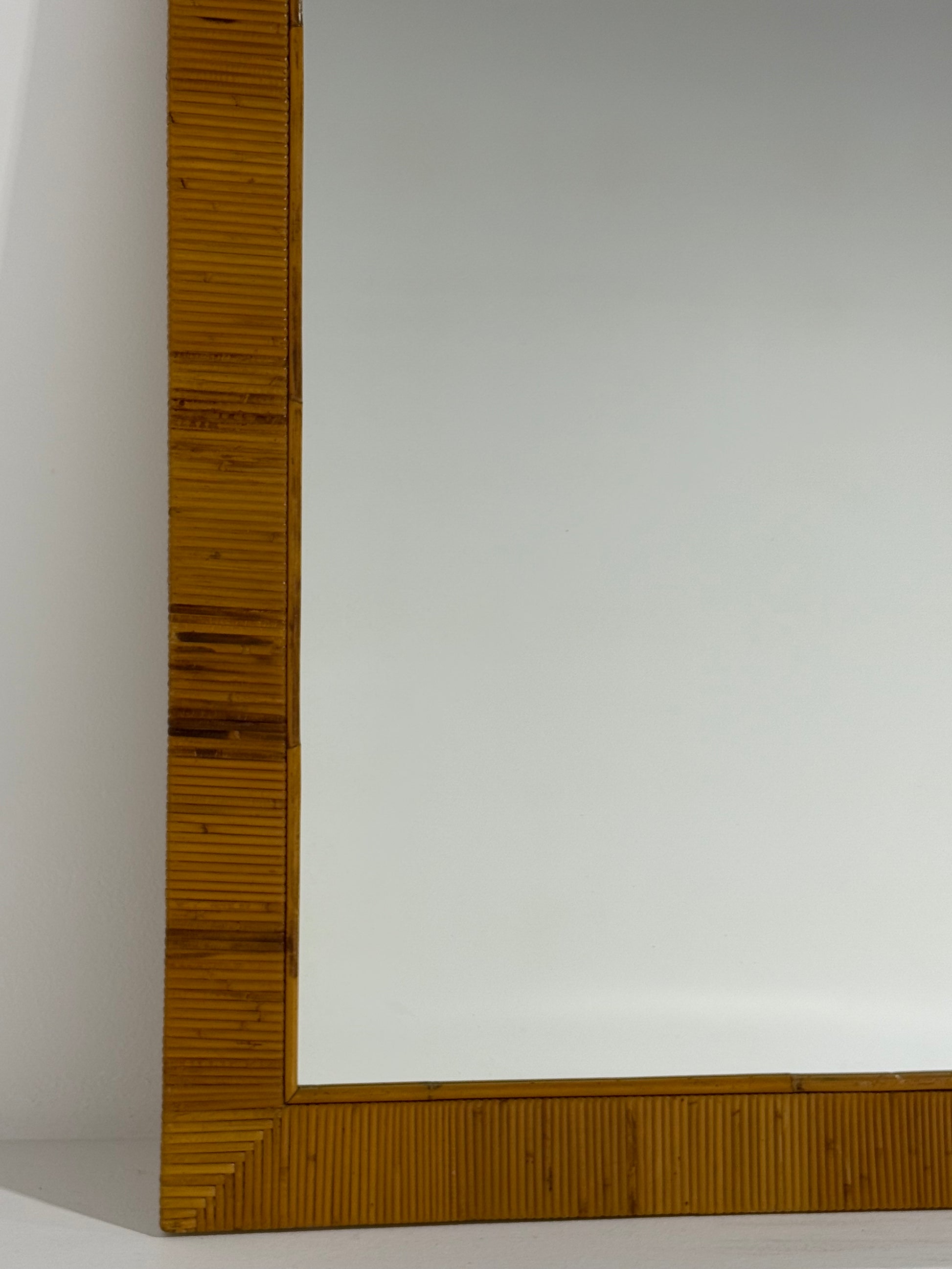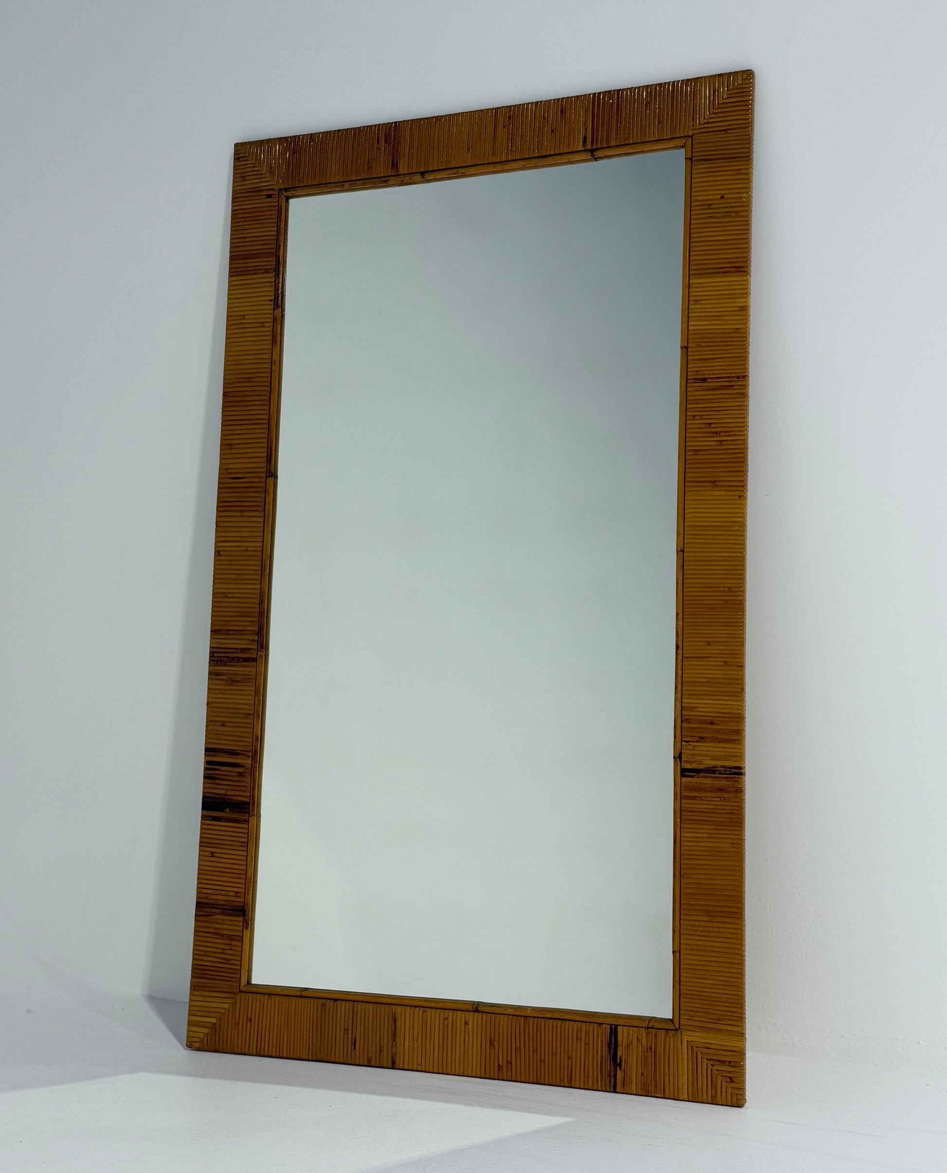 Extra large vintage Pencil Reed style rattan mirror. Circa 1970’s. Rare full length size with bound rattan frame.