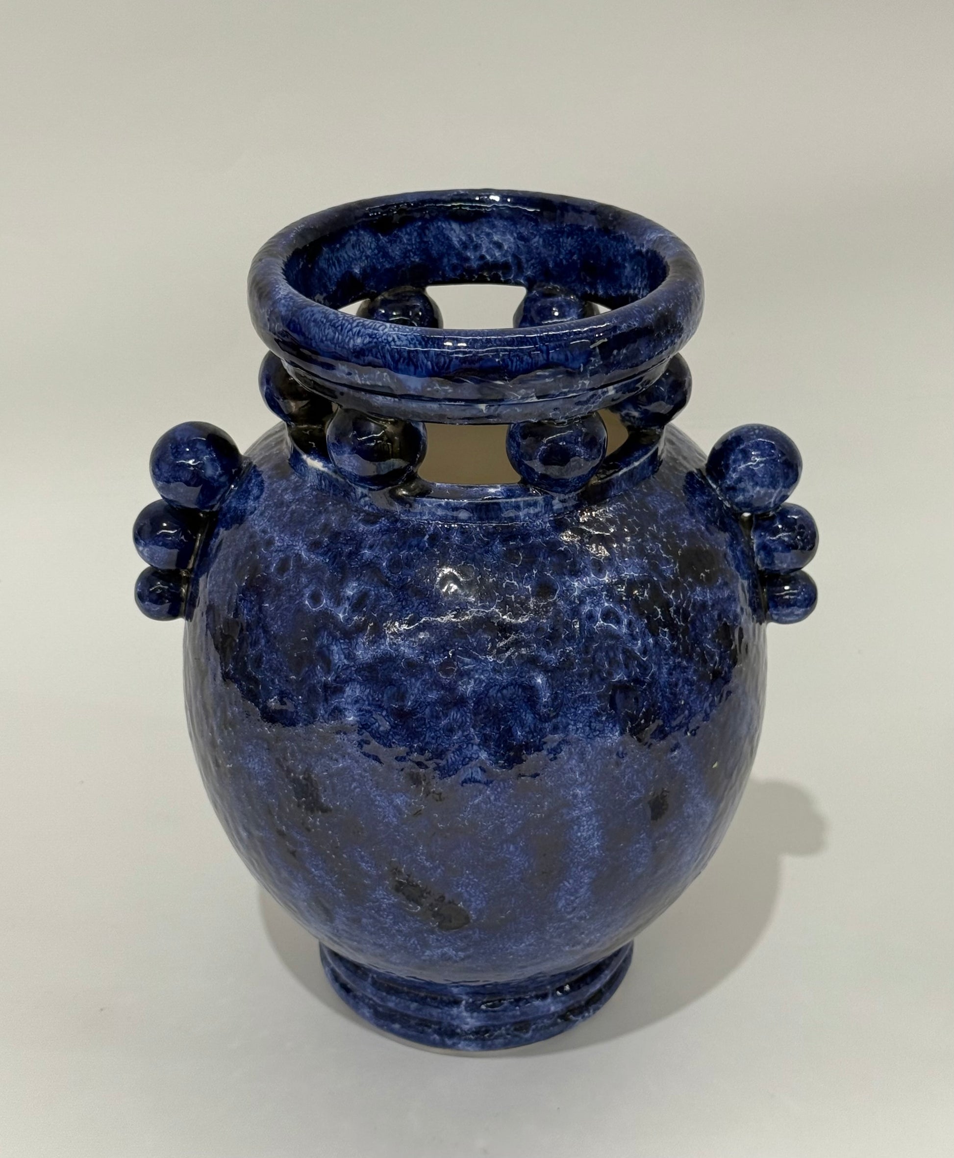 Striking and rare French Art Deco vase by Gustave Asch for Sainte Radegonde. Circa 1940’s. Stunning design features and a rare shade of blue . Signed on the base. The vase displays the words “Lac Chambon” in small gold print. This may suggest it was made for a chateau on this lake in France