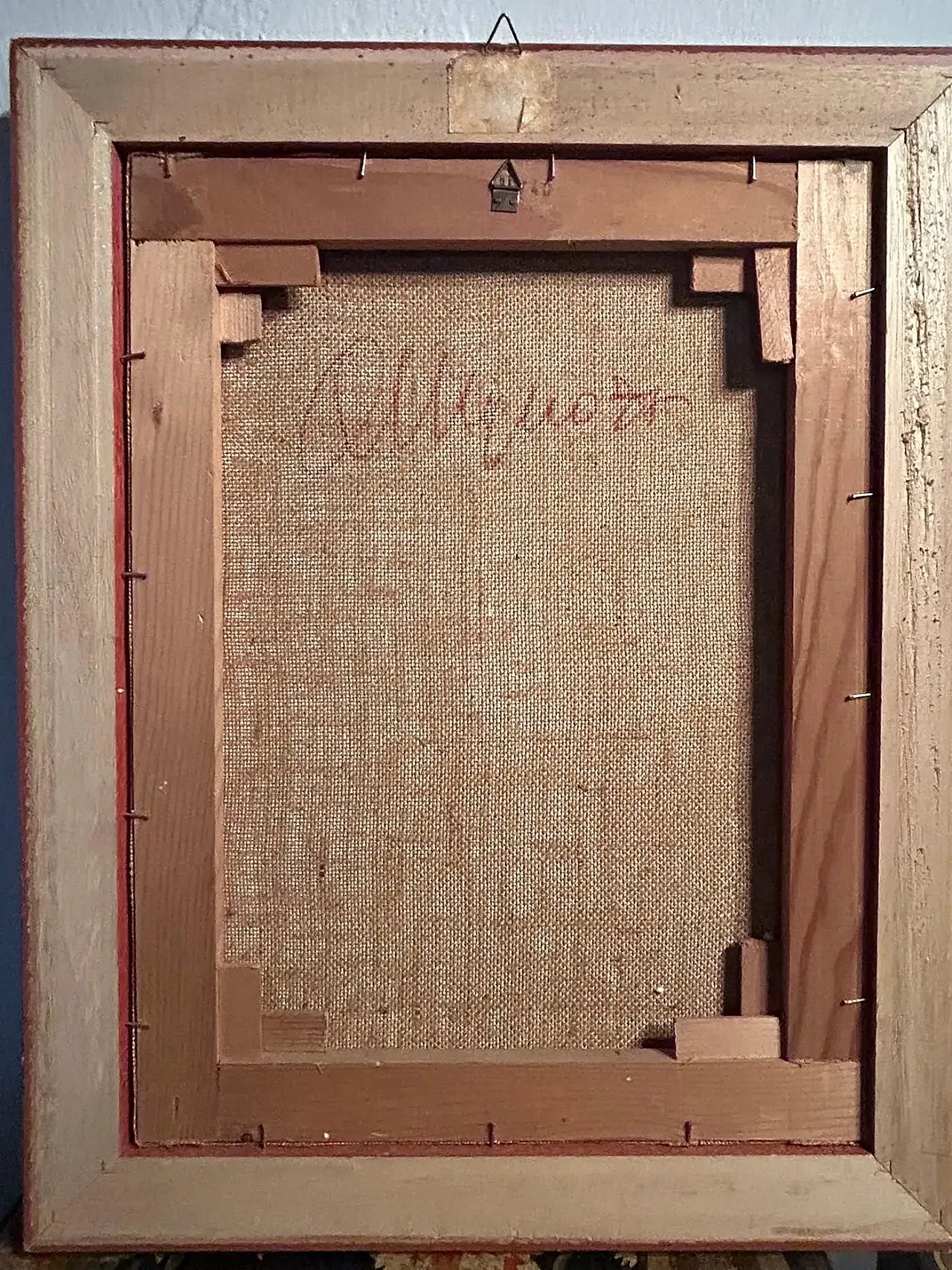 Original work by Antonio Mignozzi, Italy circa 1970’s. The frontal figure is rendered through superpositions of material layers, earths and natural pigments that recall ancient wall surfaces, with a rough and irregular texture typical of the artist's technique. The intertwining of hands and the face with archaic proportions fit into a rigorous compositional space, marked by sober geometries and fields. Mignozzi's signature is clearly visible on the front and also on the back, guaranteeing authenticity. The work presents a warm and earthy palette, ideal for contemporary environments or collections attentive to post-twentieth-century Italian painting. A museum-quality work with a strong visual presence, from a private Italian collection. Antonio Mignozzi was born in 1942 in Trebisacce (CS), studied at the Brera Academy in Milan, and has lived and worked in Verbania since 1973.