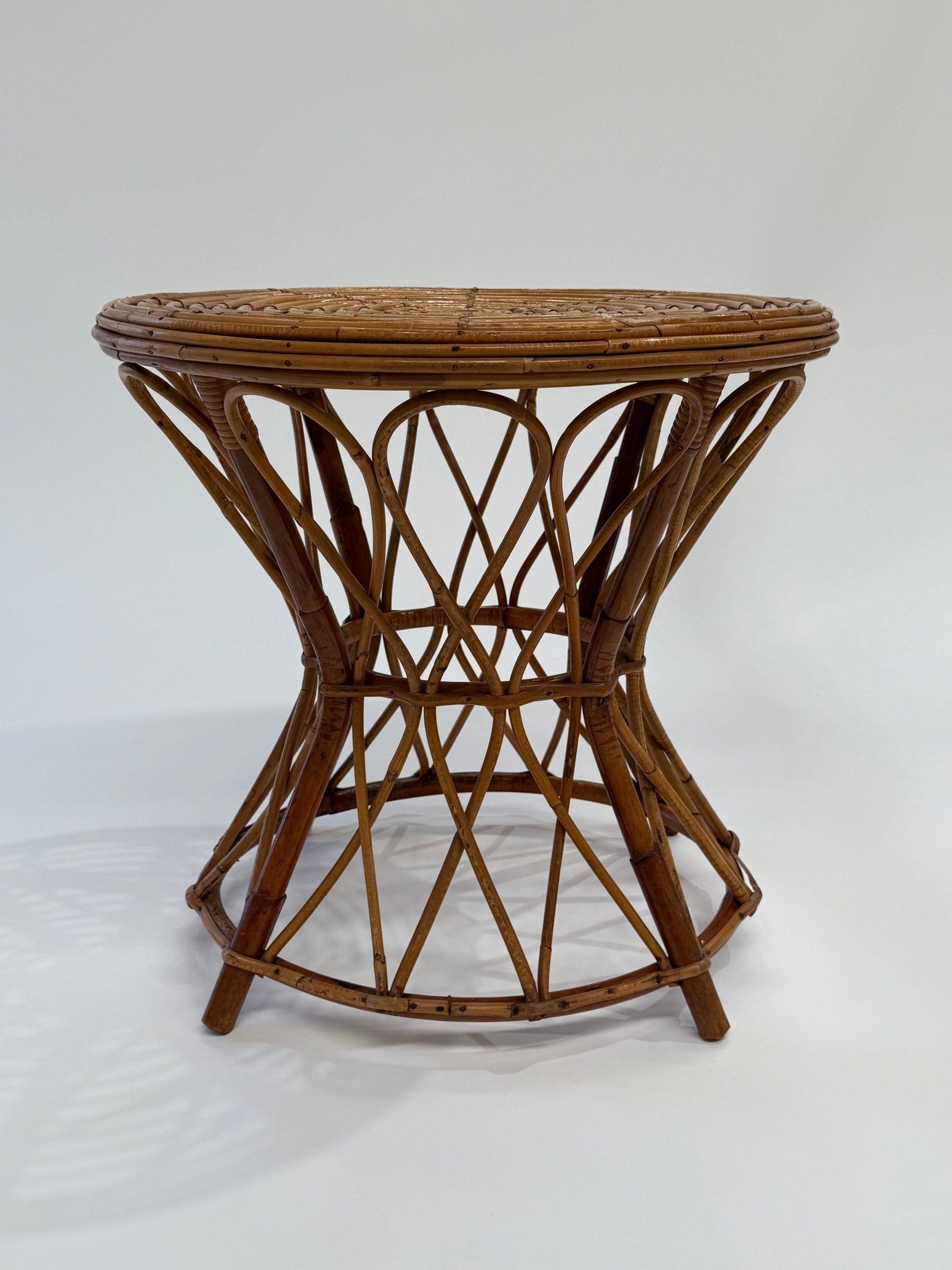 Vintage Italian bamboo side table by Lio Caiminate for Case e Giardino. Made in Italy, Circa 1950’s. In excellent condition