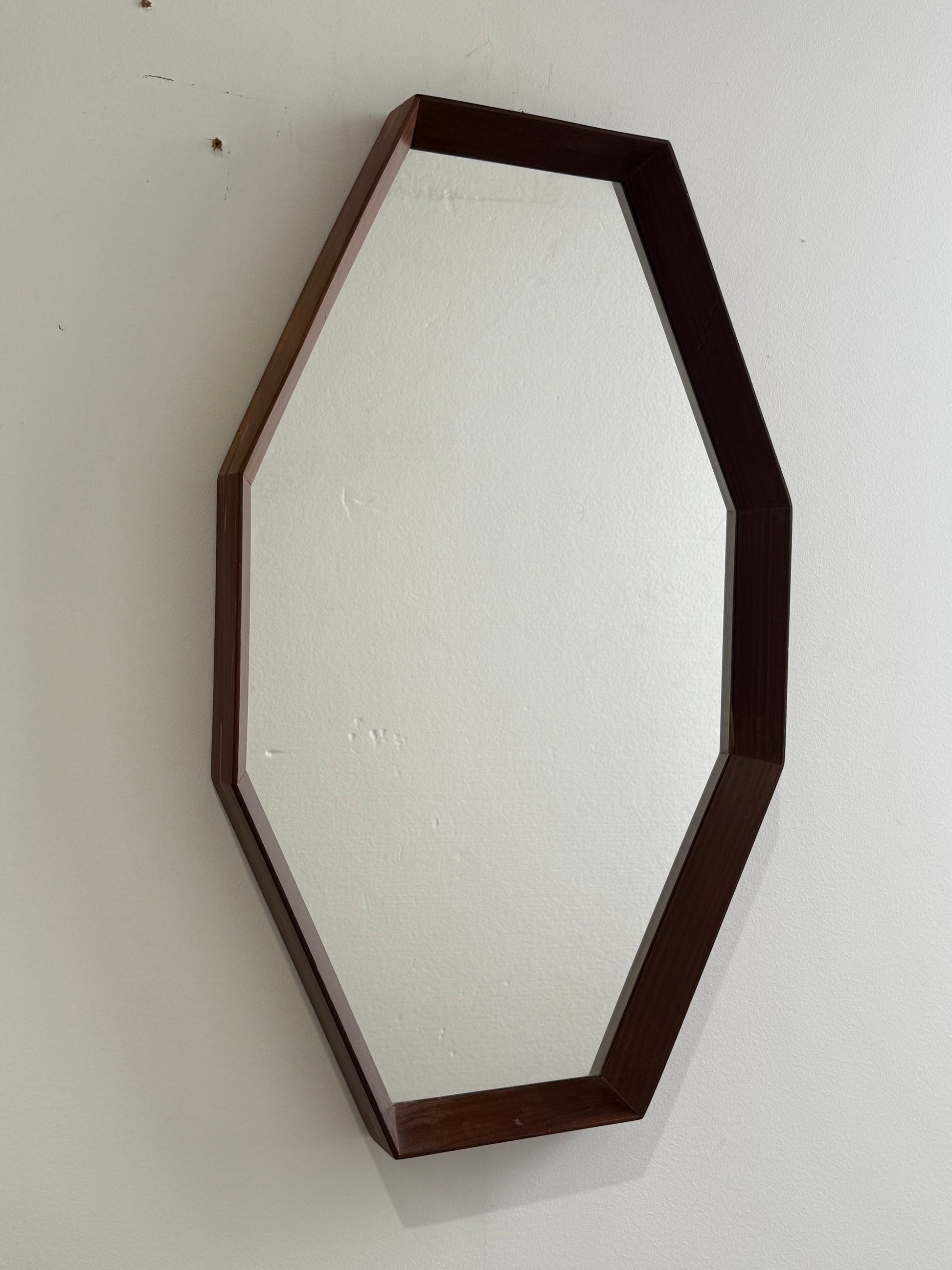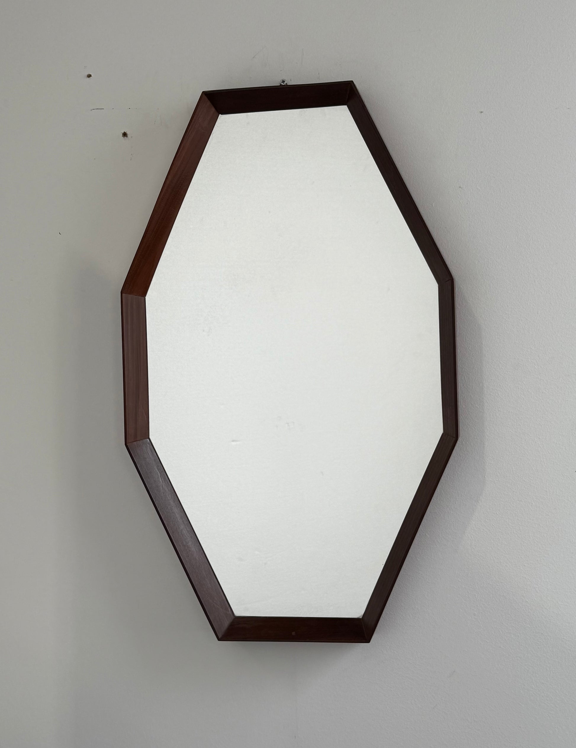 Vintage Italian teak mirror in an octagonal shape. Recessed mirror in a teak frame. Circa 1960’s.