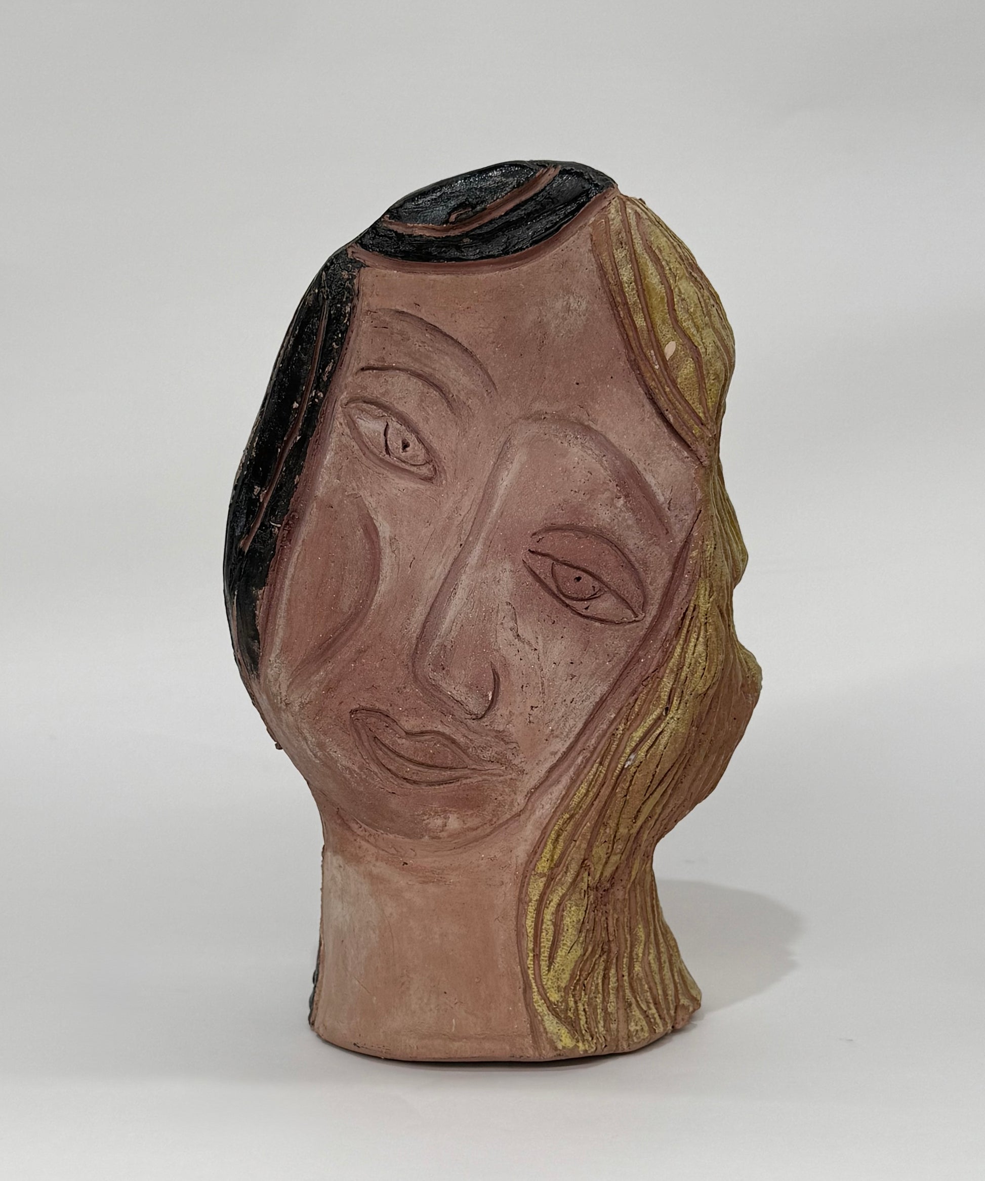 Striking Spanish abstract ceramic sculpture with three faces. Circa 1980’s