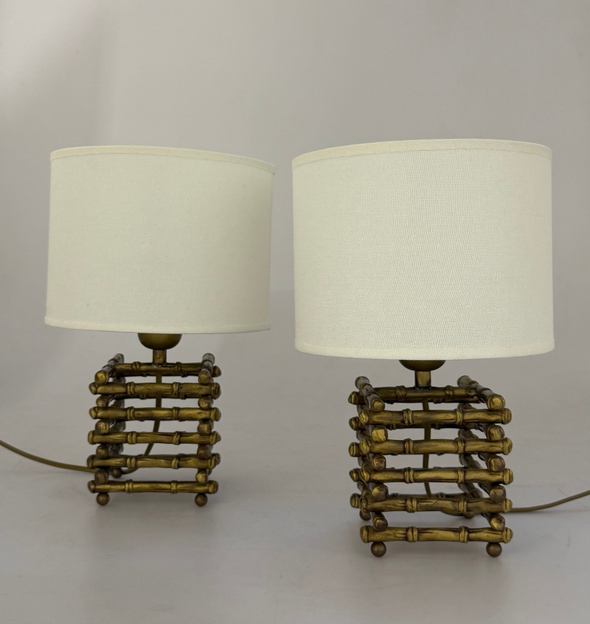 Vintage Brass Faux Bamboo Lamp - Two Available