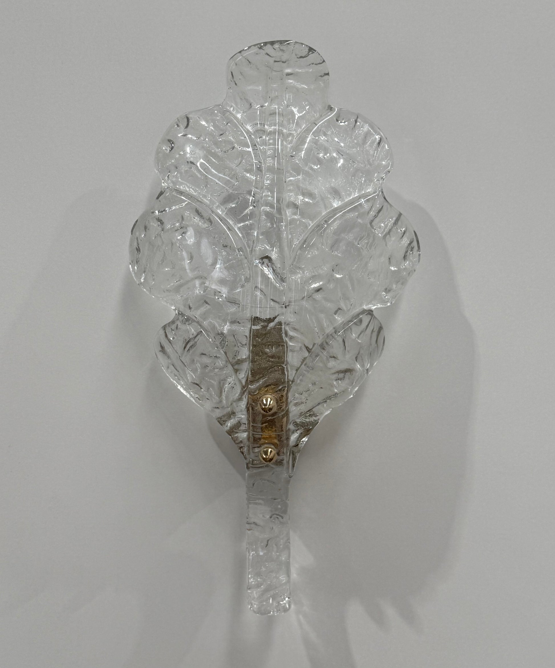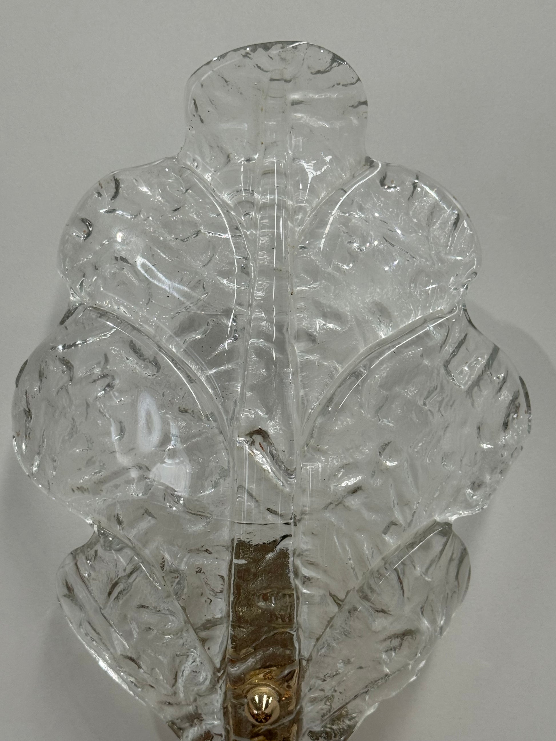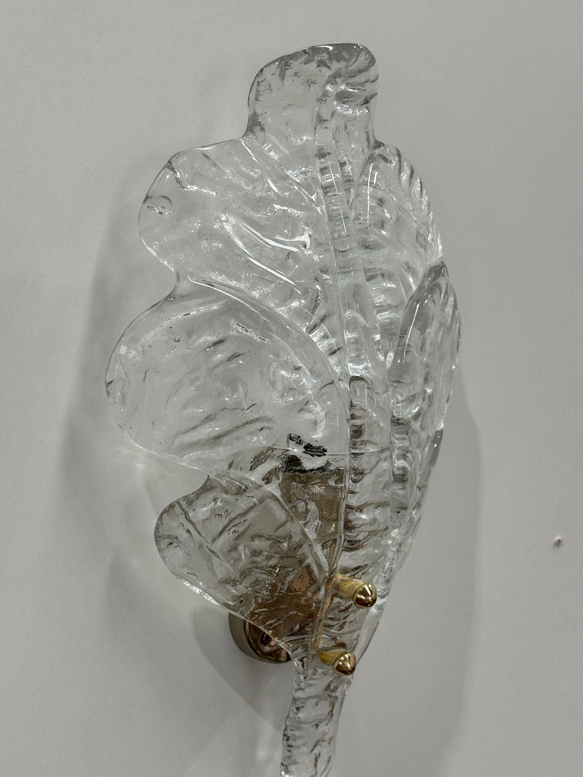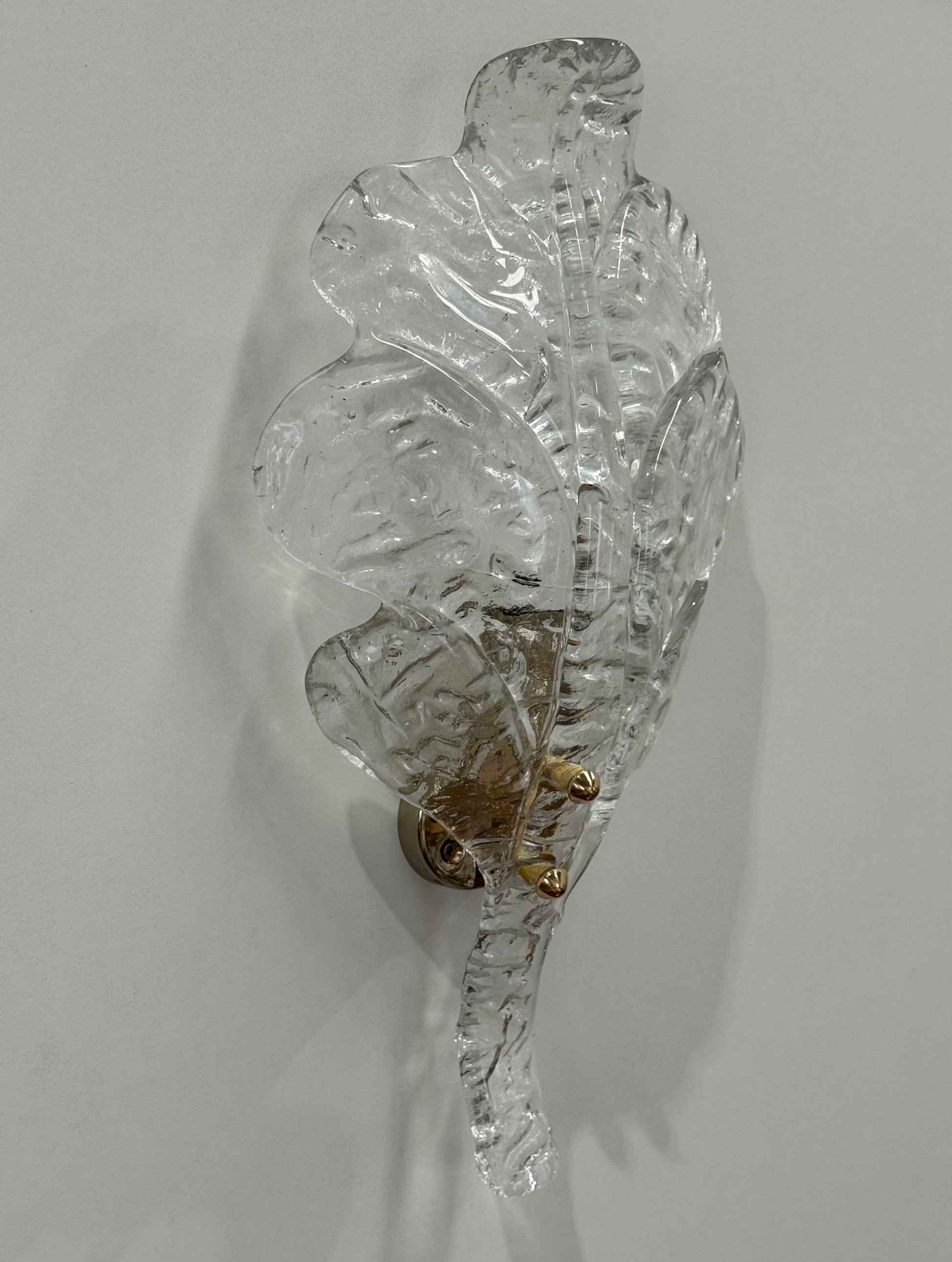 Impressive hand blown Murano glass, leaf shaped wall light attributed to Carl Fagerlund for Offerors. Circa 1970’s. Leaf shaped hand blown glass shade sits in a brass fitting. Sourced in Italy.