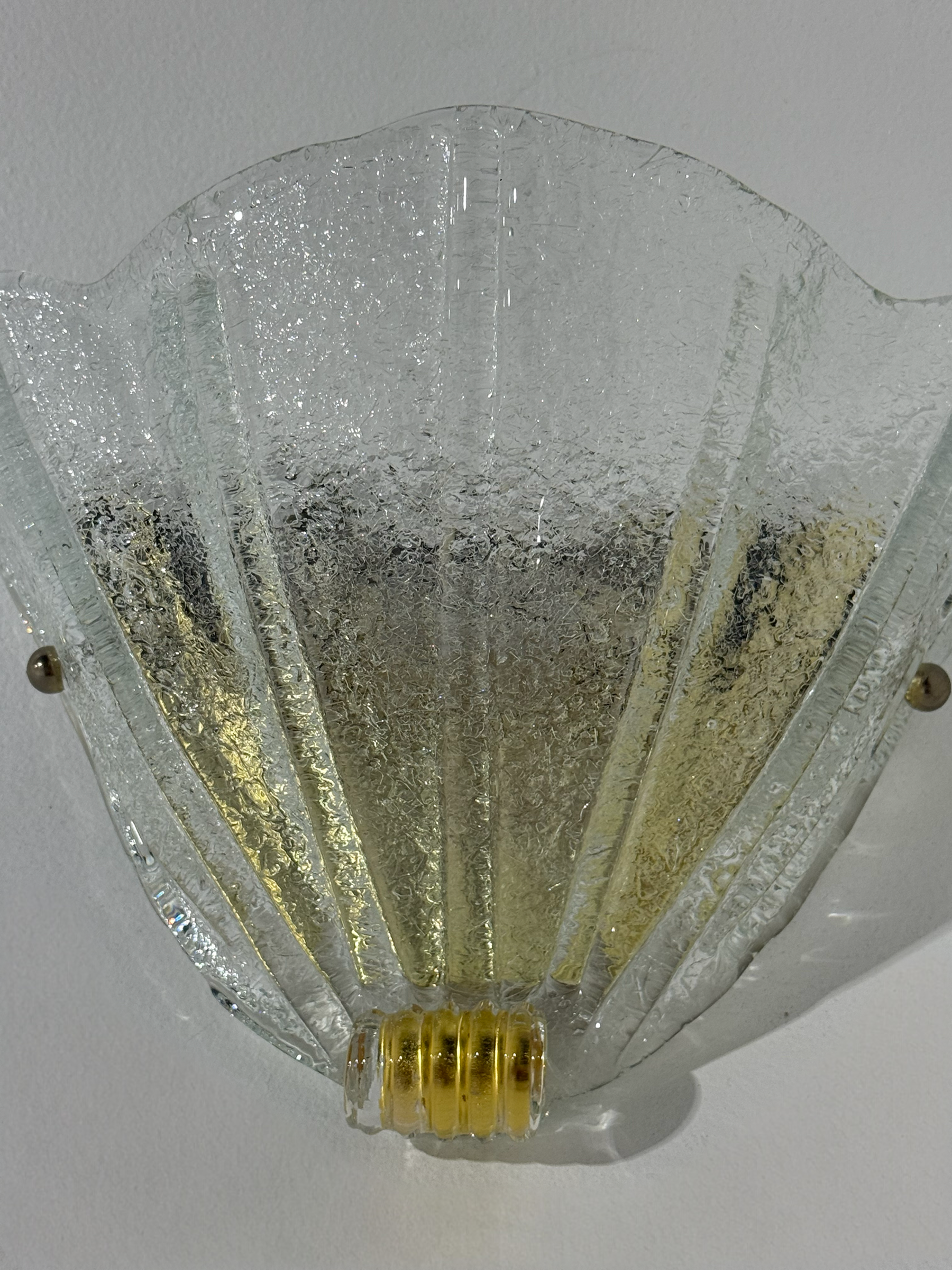 Stunning vintage Murano wall light in the form of a shell. Circa 1980’s. The sconce features brass fittings with lovely scallop edge detailing.