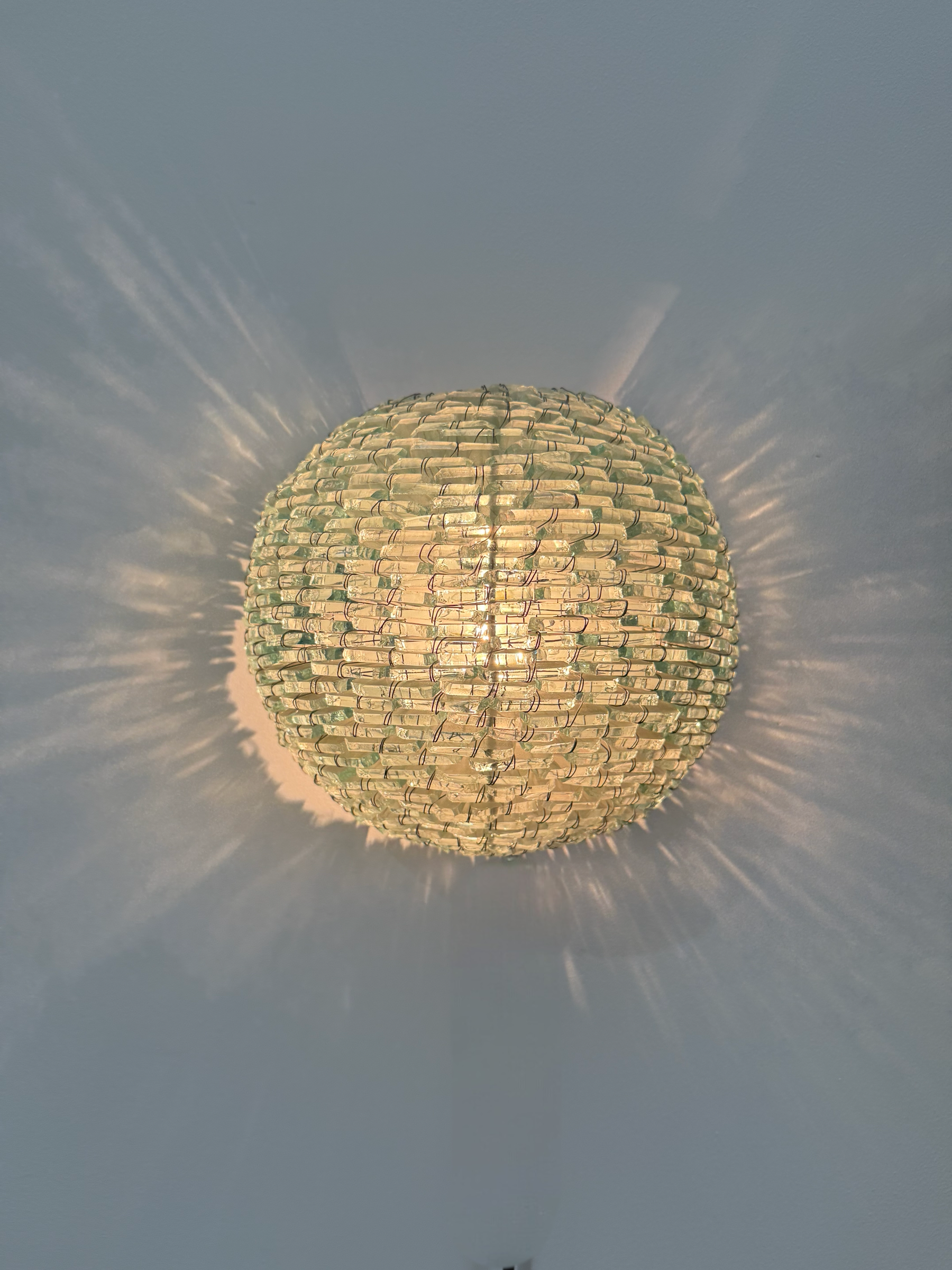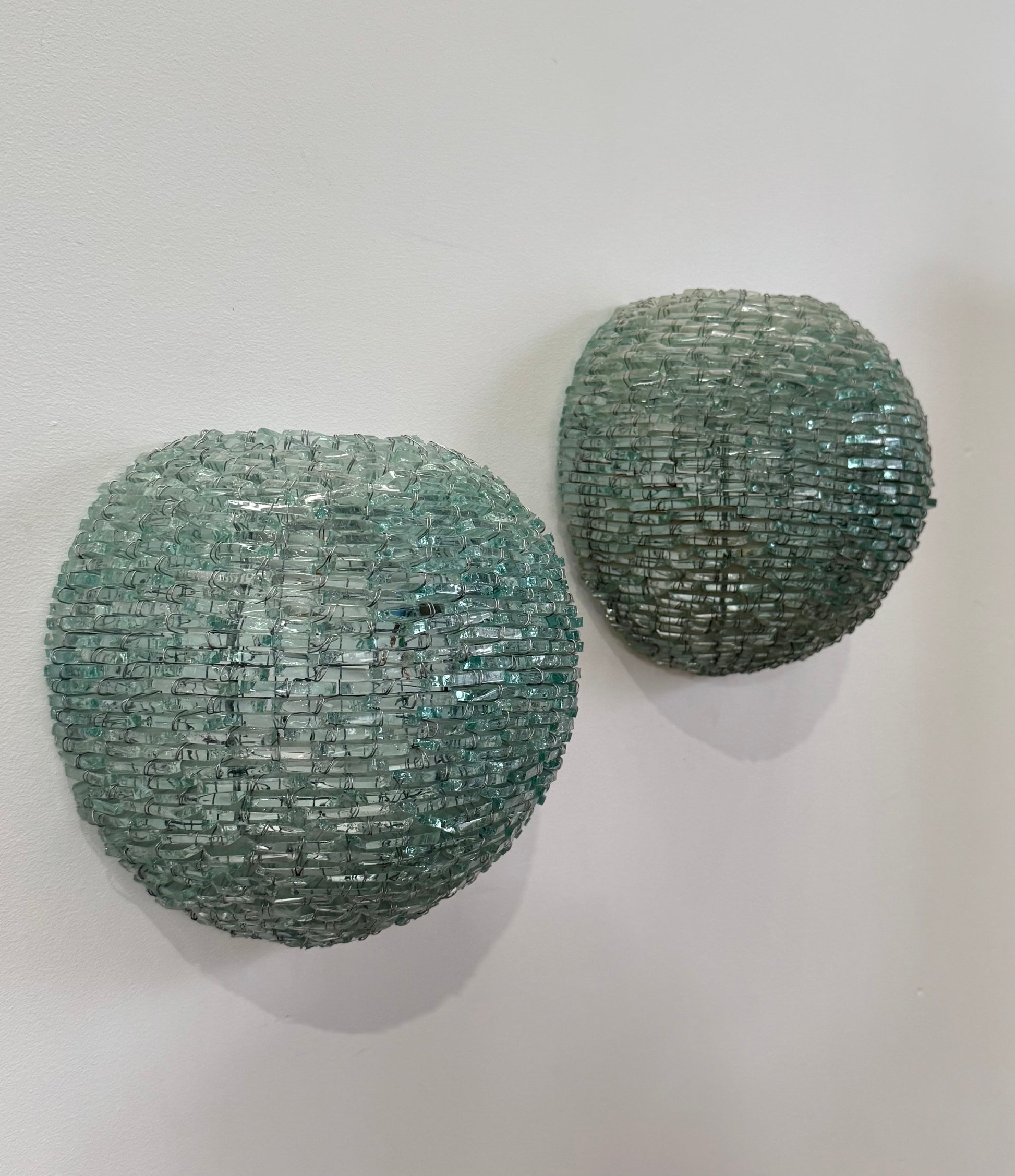 Vintage Italian Murano glass wall sconces. The lights are made from segmented pieces of glass woven on to a wire frame. Very unique design. There is an opening at the top.