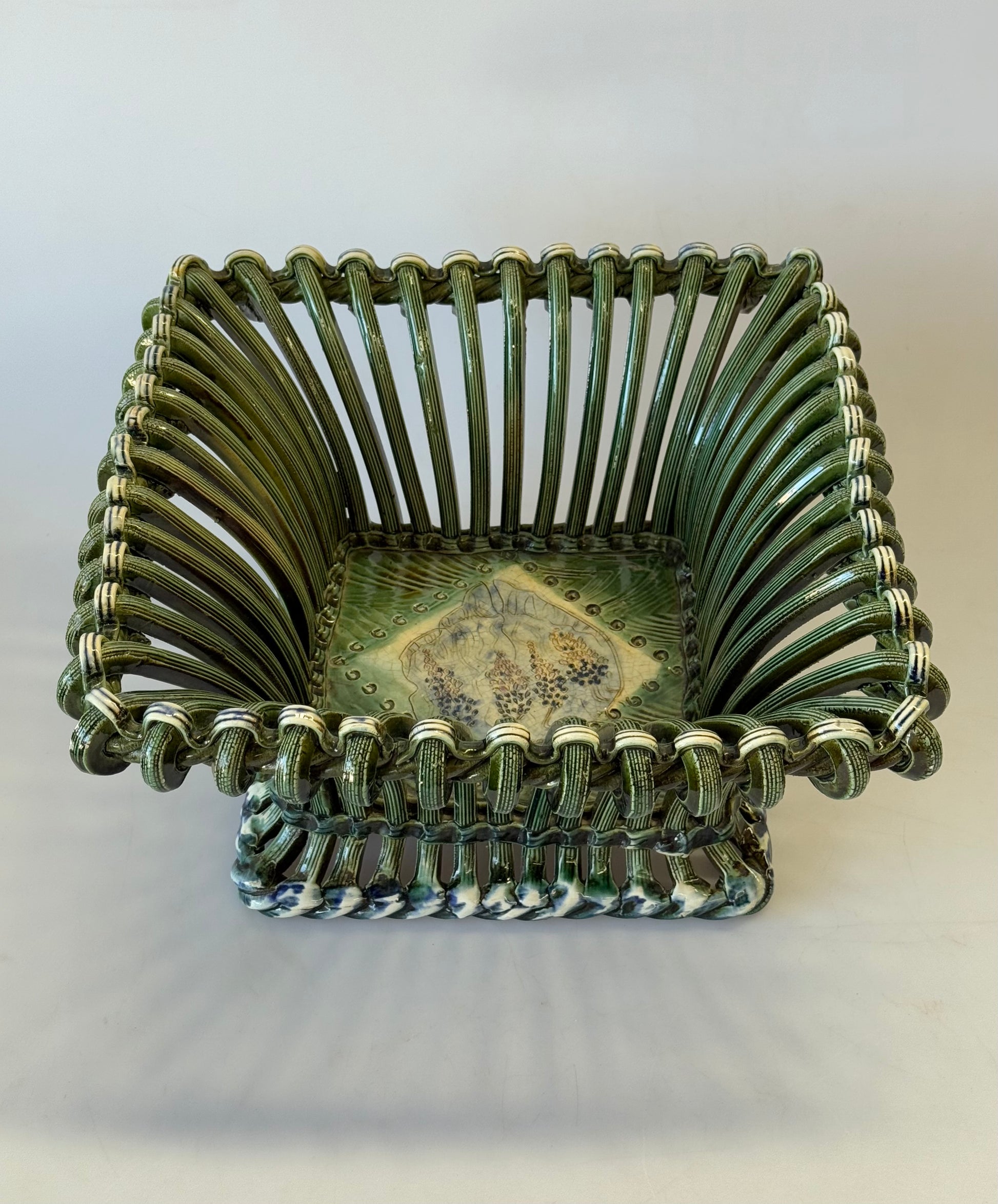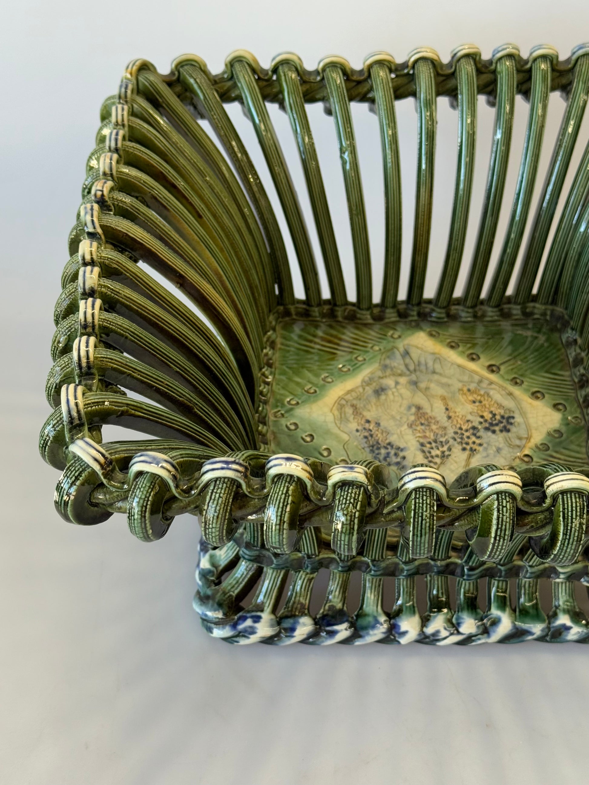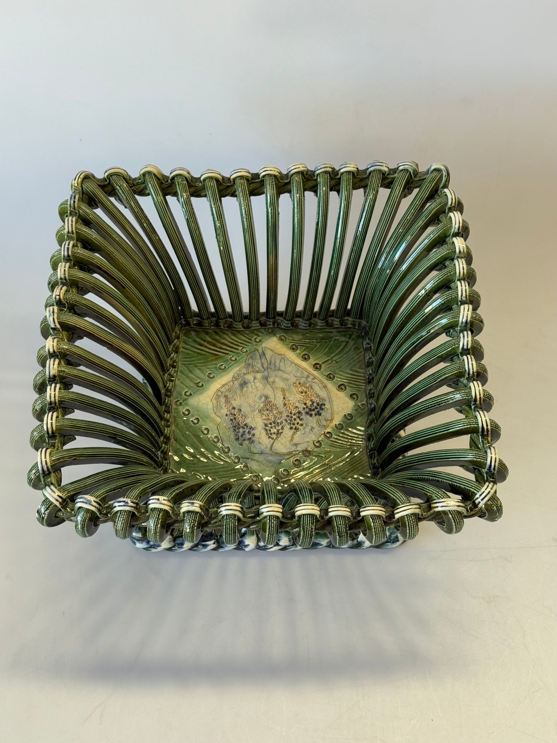 Unique vintage French woven ceramic bowl. Hand painted detail and beautiful hand made design. Signed on the base. Sourced in France