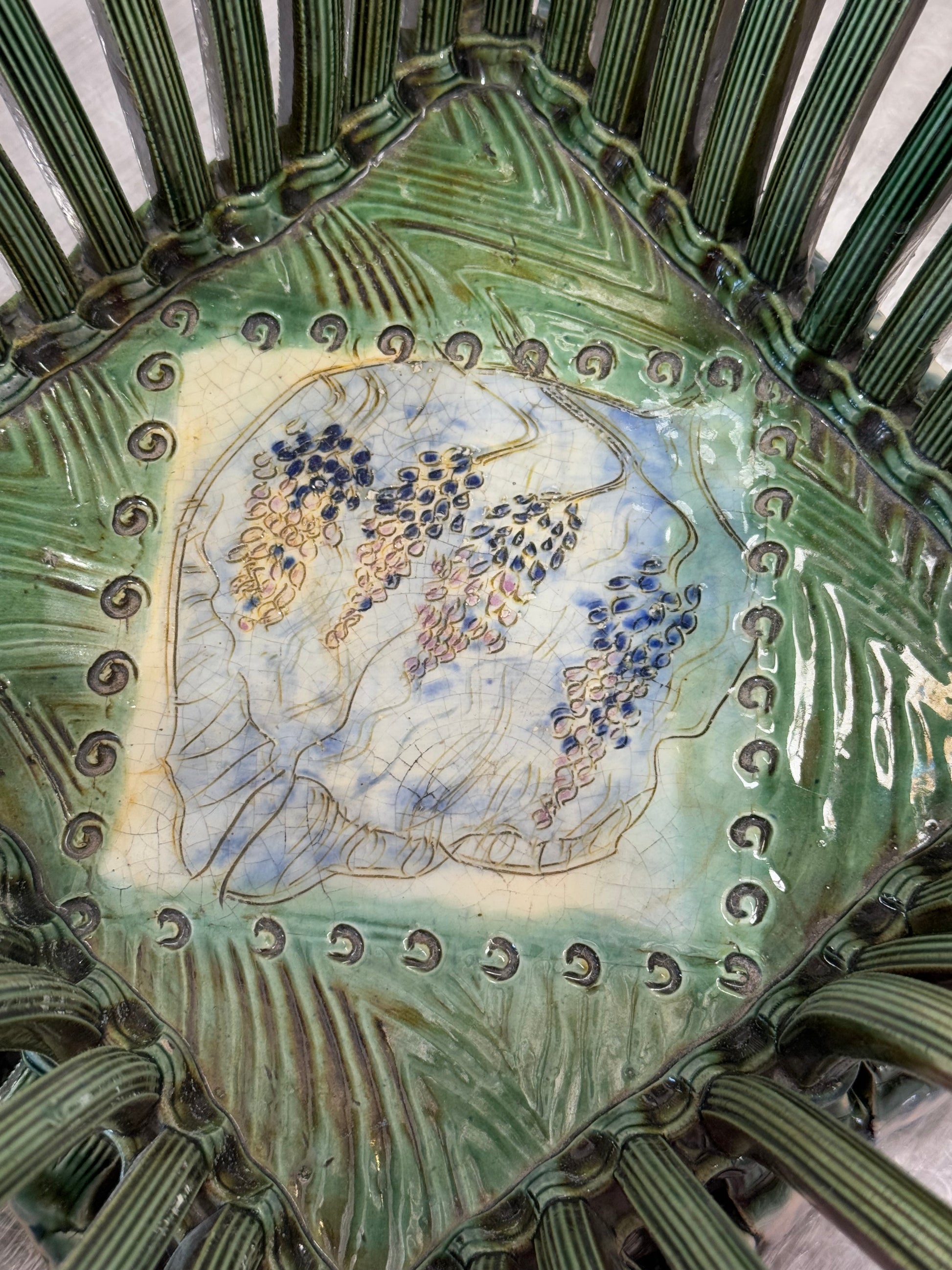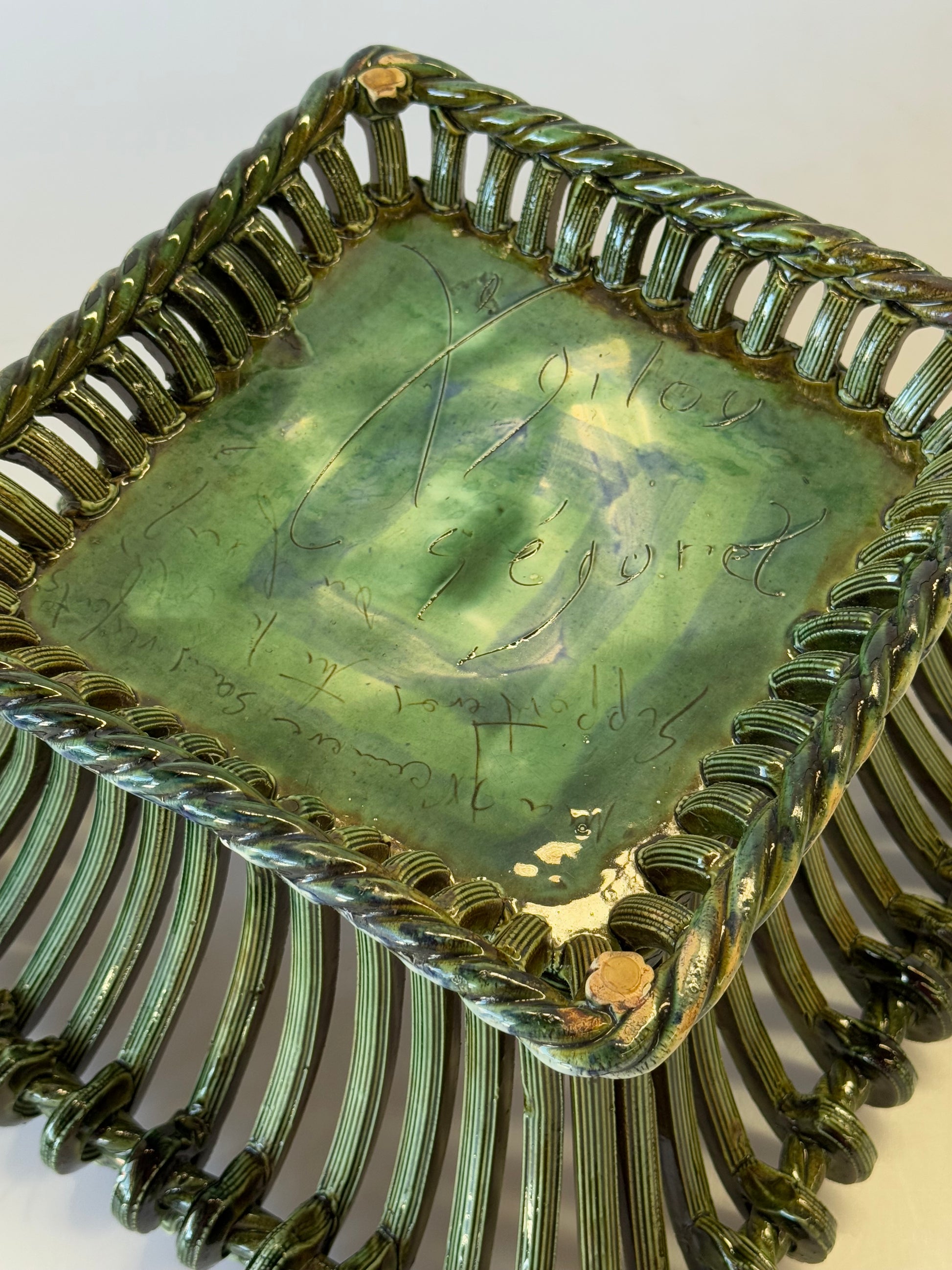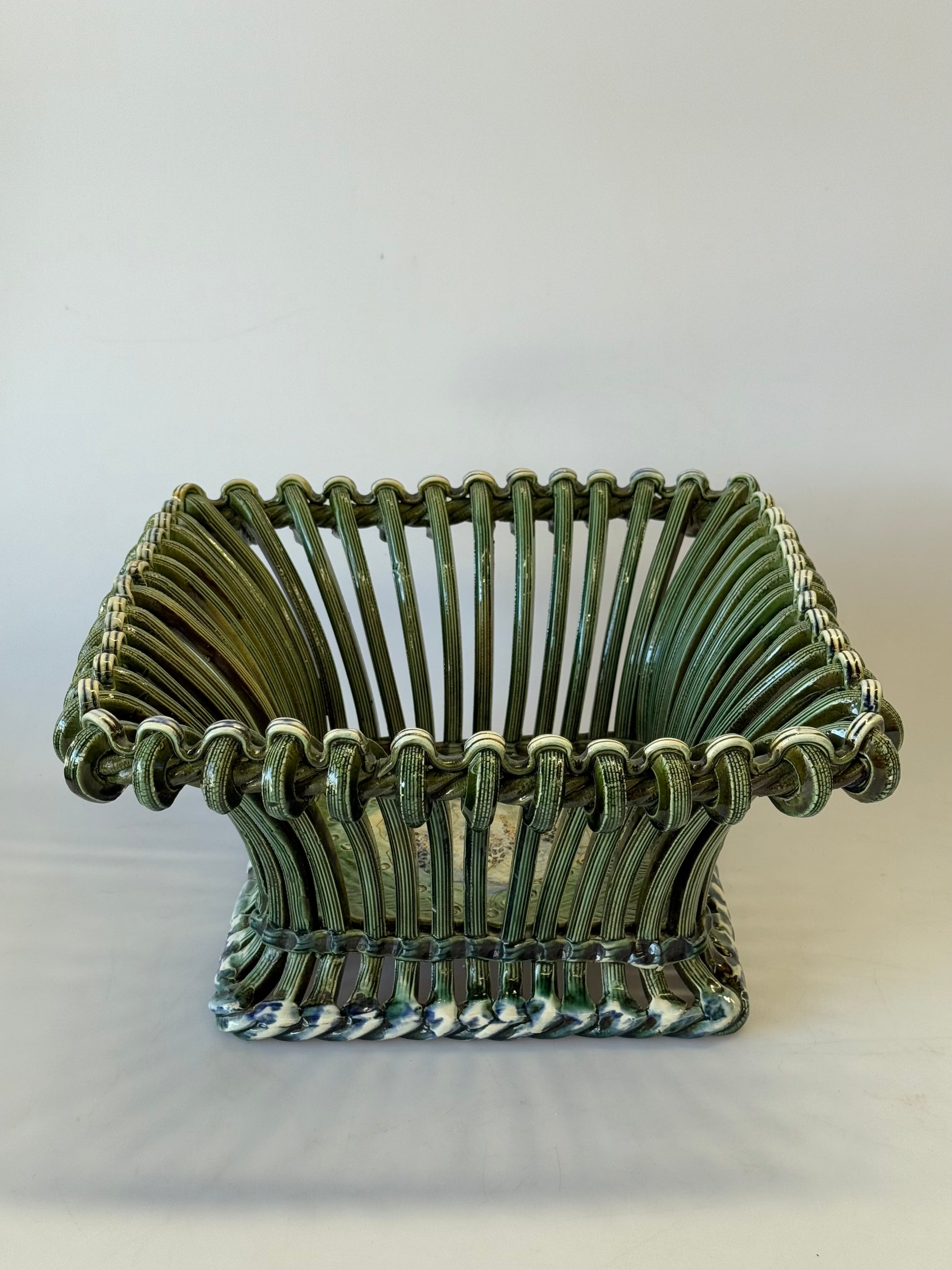 Unique vintage French woven ceramic bowl. Hand painted detail and beautiful hand made design. Signed on the base. Sourced in France
