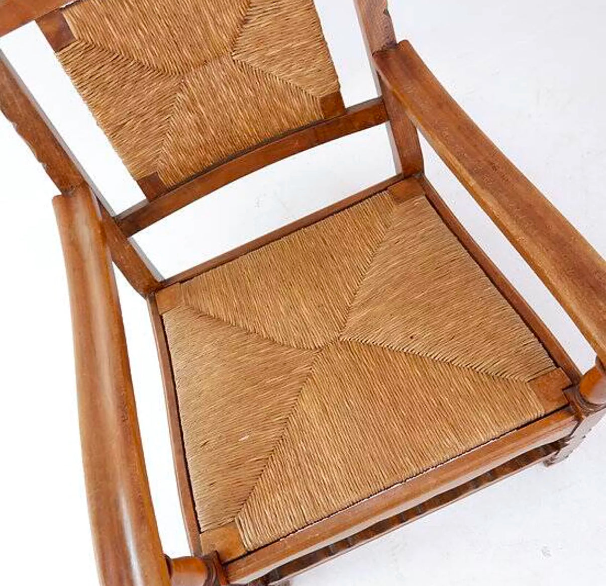 French oak armchair with straw seat and back in the style of Guillerme et Chambron. Circa 1960’s.