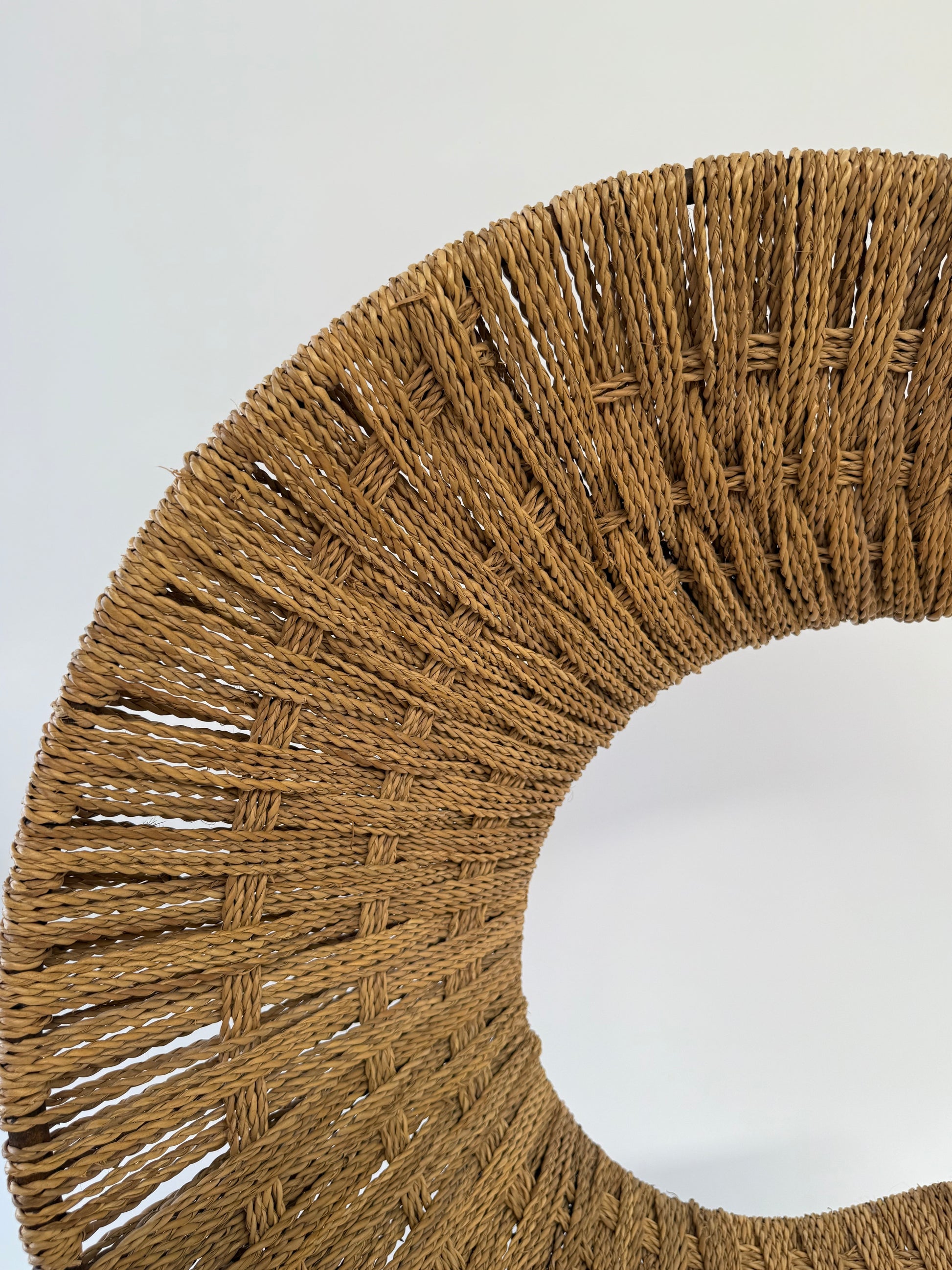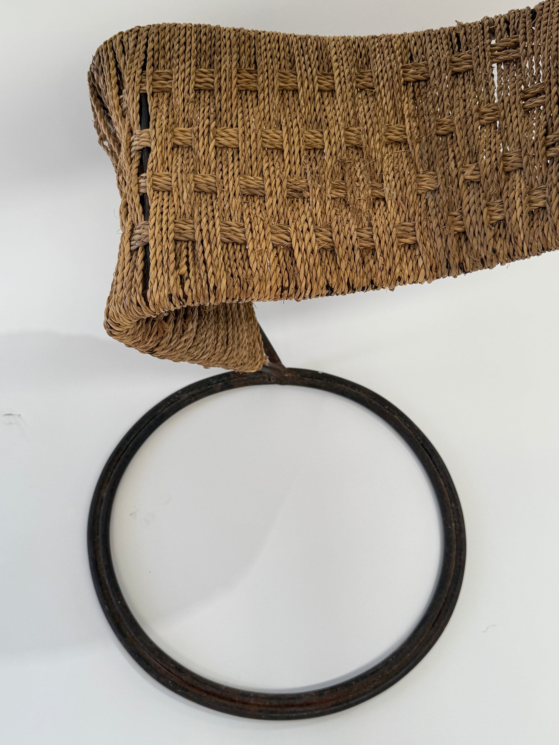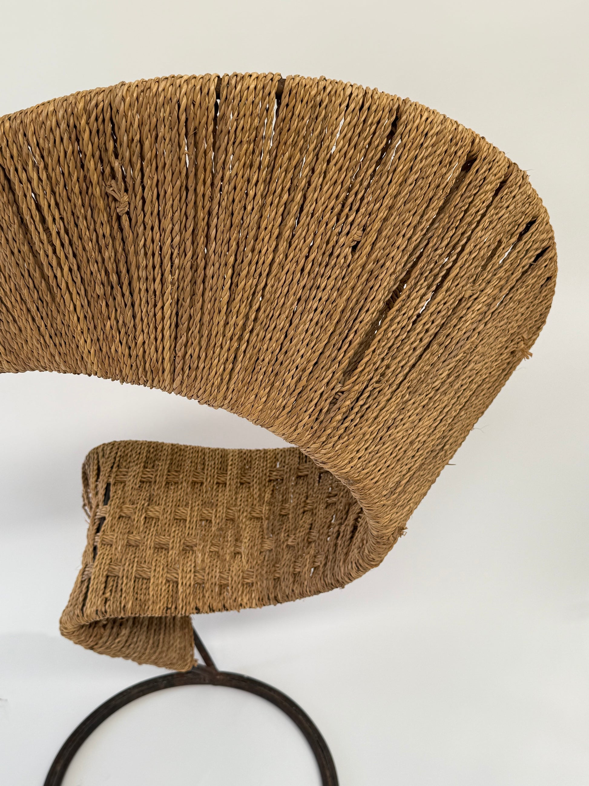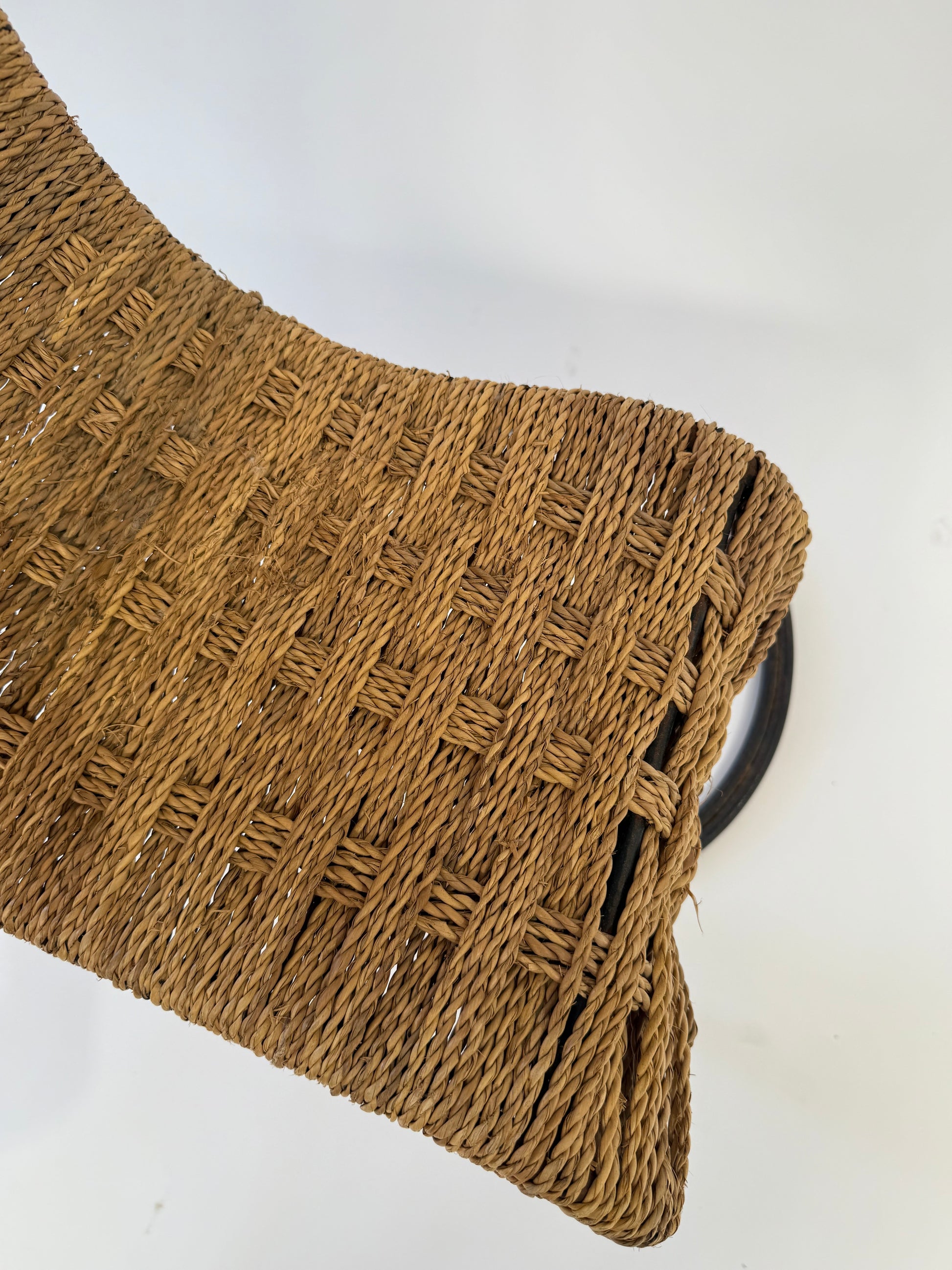 Vintage sculpted iron and woven rush armchair attributed to Tom Dixon. Circa 1990’s. Sculpted iron and steel frame wrapped in rush cord. Sourced in France