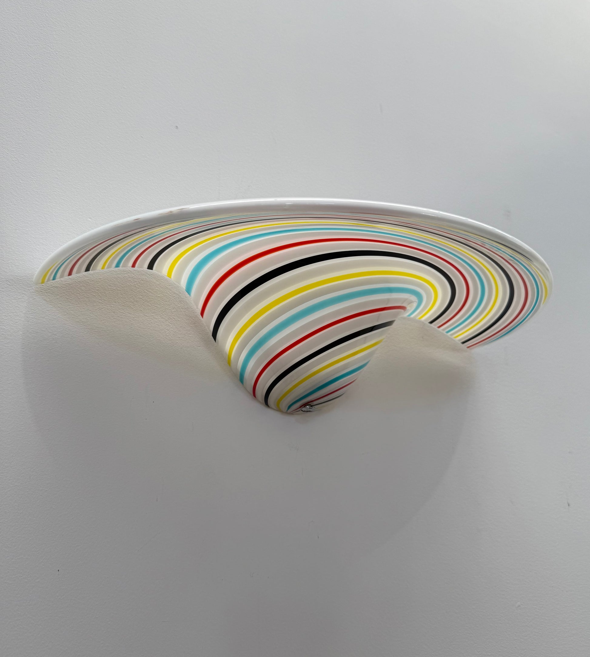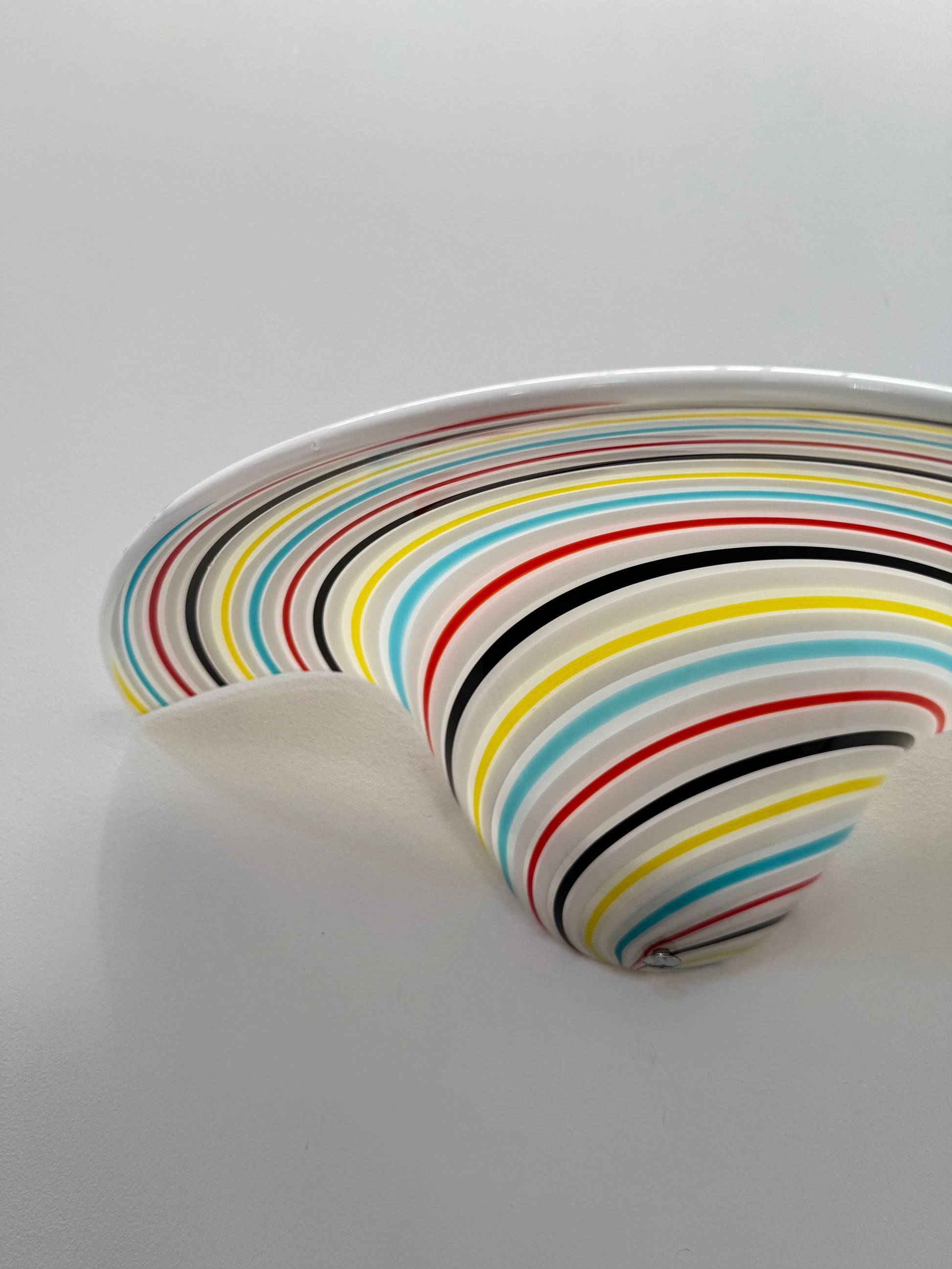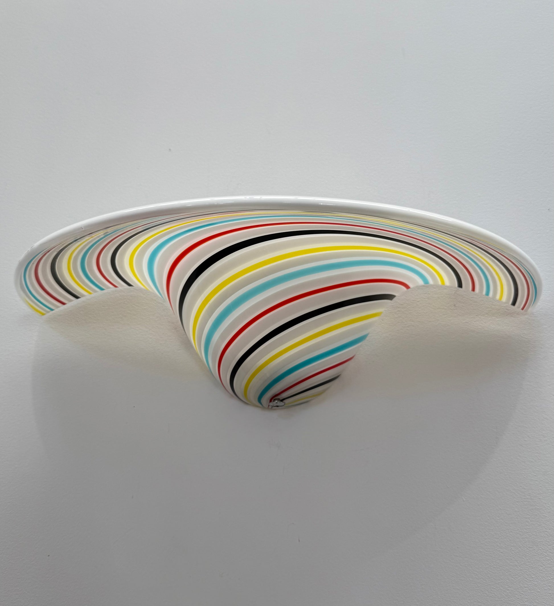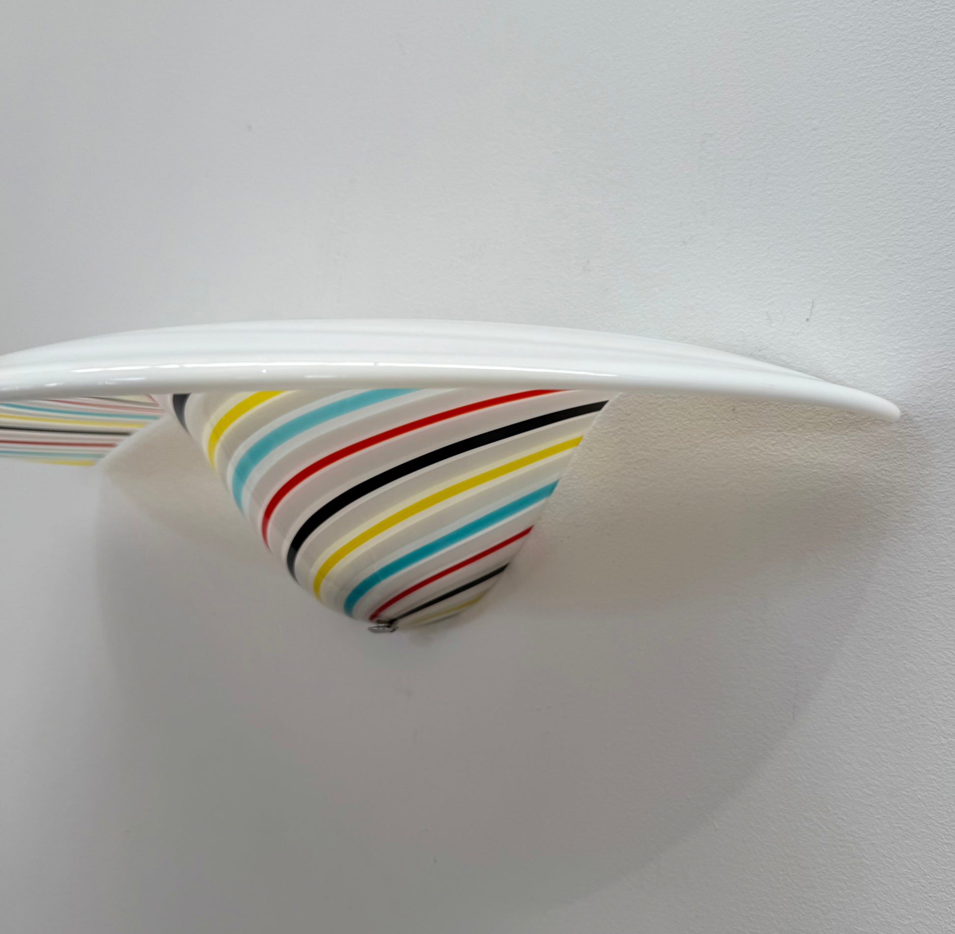 Stunning Murano glass tulip shape wall light with multi coloured stripe pattern. Circa 1980’s. Sourced in Italy