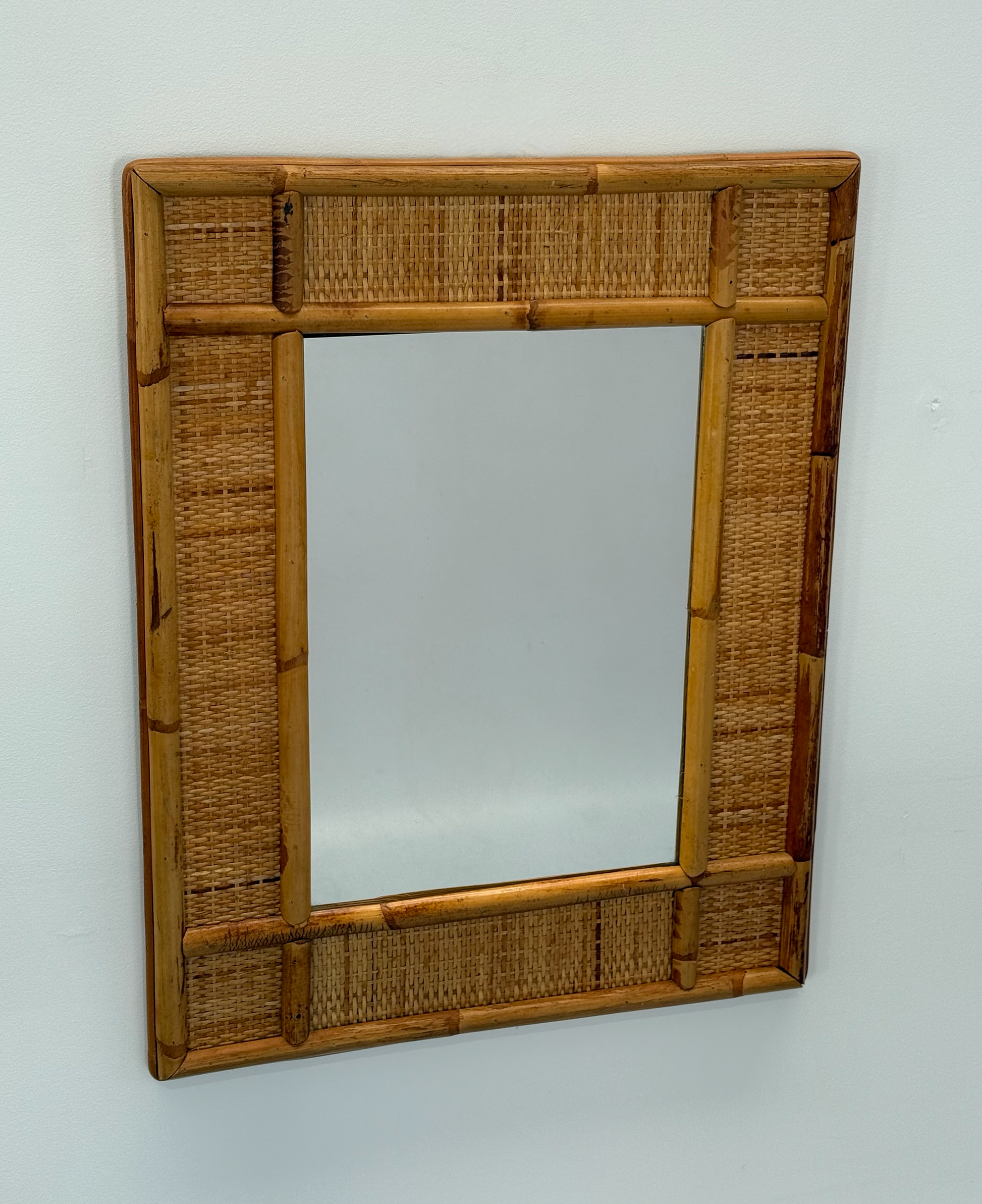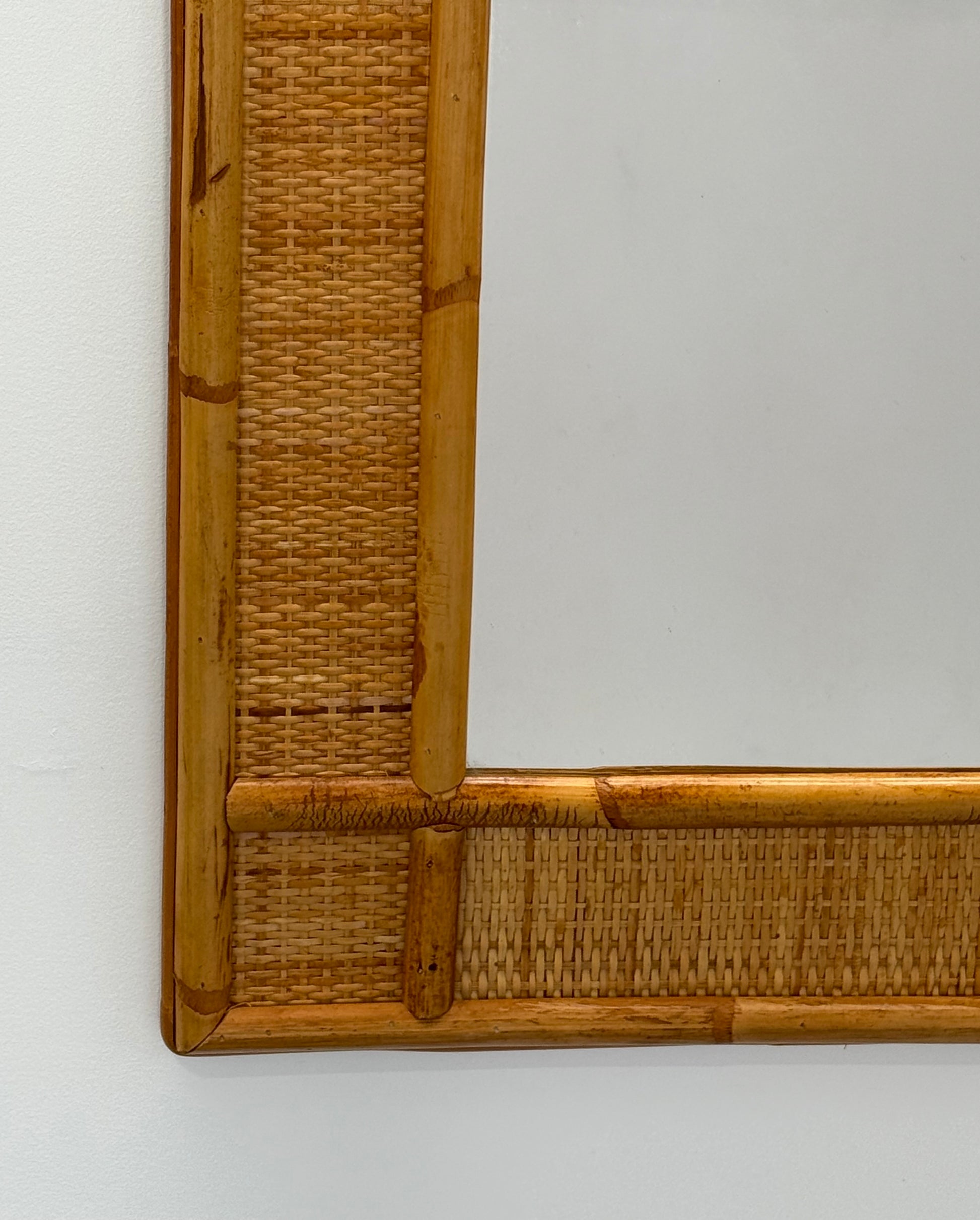 VIntage bamboo and rattan mirror. bamboo frame with rattan inserts. Circa 1970’s.