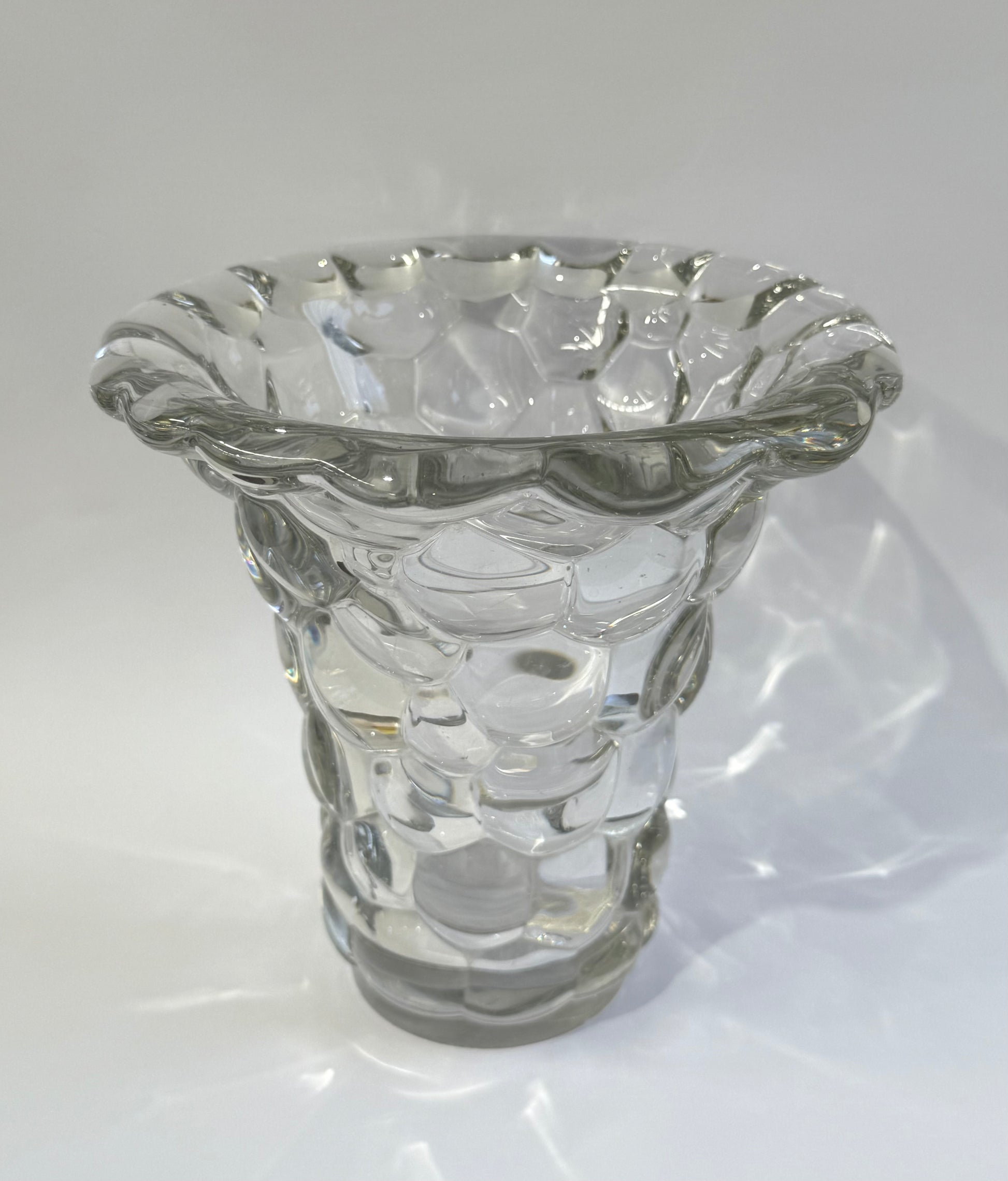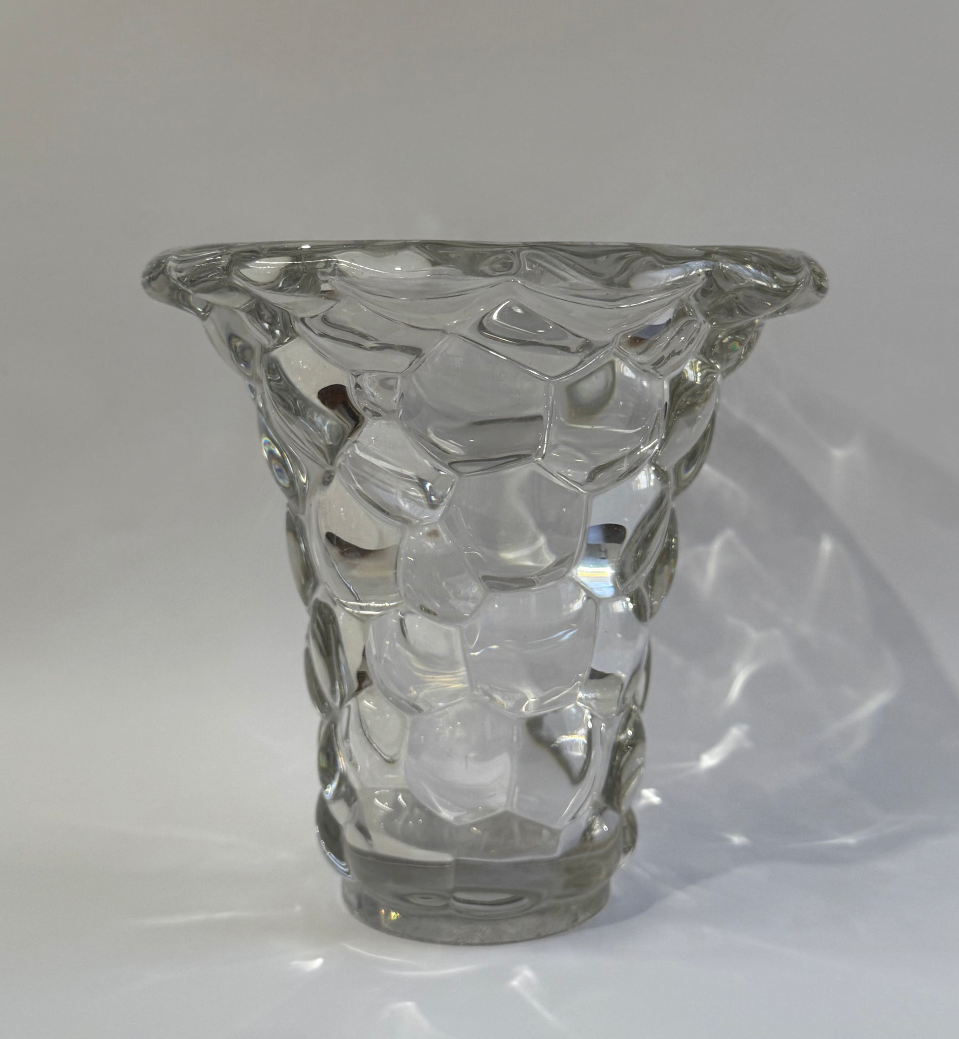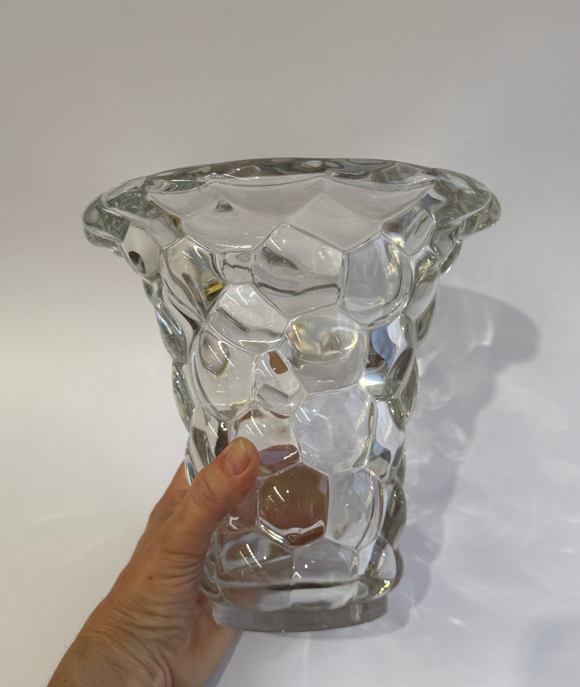 Beautiful French crystal glass vase with honeycomb design by Pierre D‘Avesn for Daum. Lovely design in thick glass and unique decoration. The vase is unsigned but referenced under the name "Nid d'abeilles" or "honeycomb" Circa 1940’s.