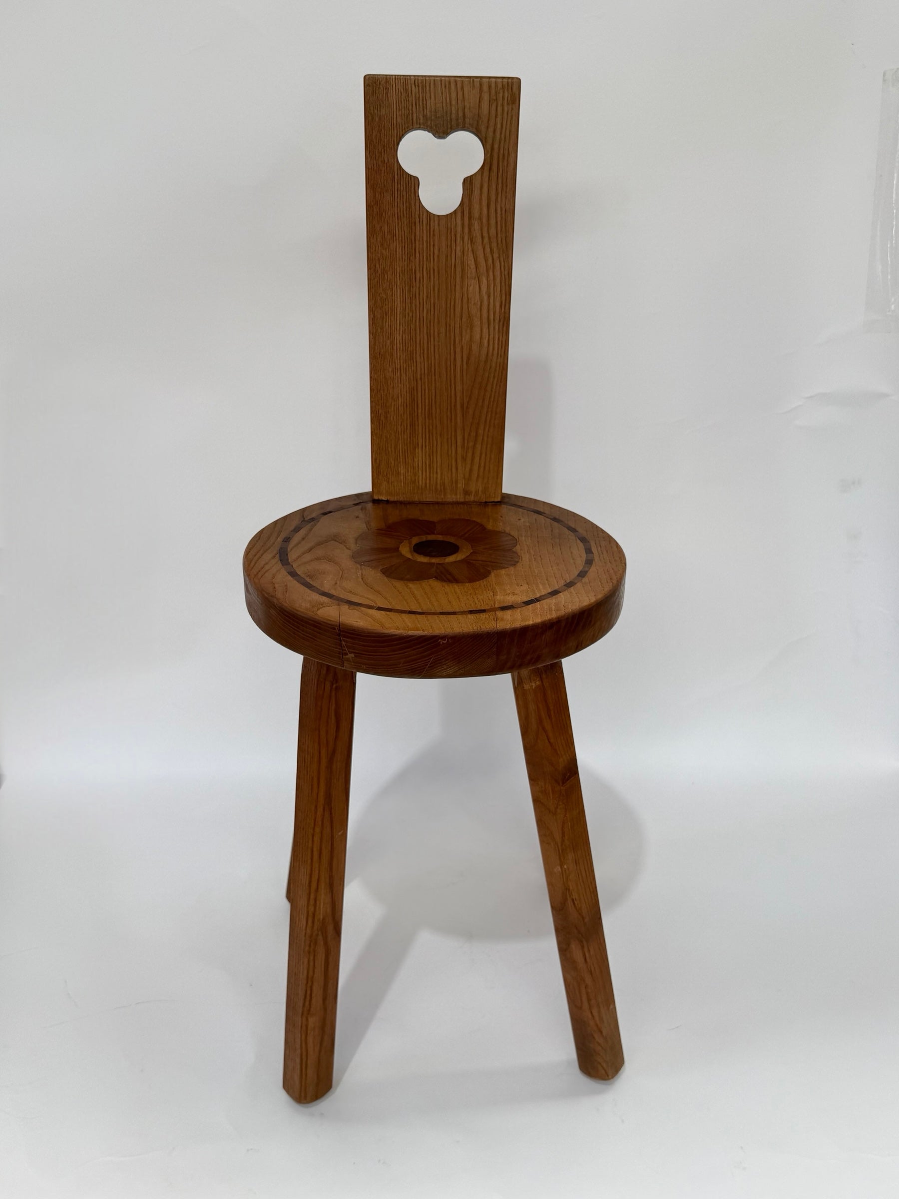 Vintage French timber Brutalist chair with heart and flower motifs. Heart shapes cut out on the backrest and flower detailing on the seat. Circa 1950’s. Sourced in France.