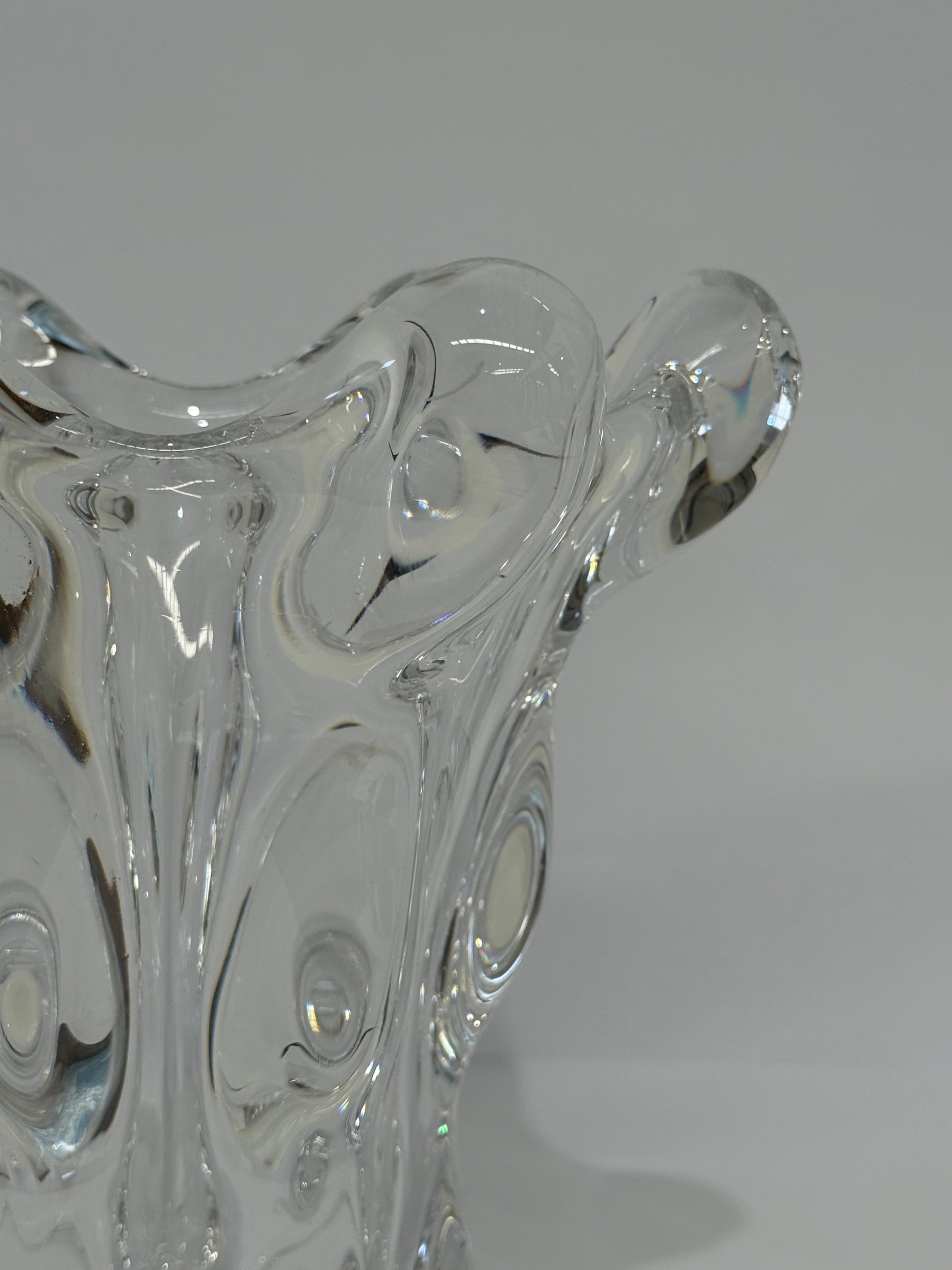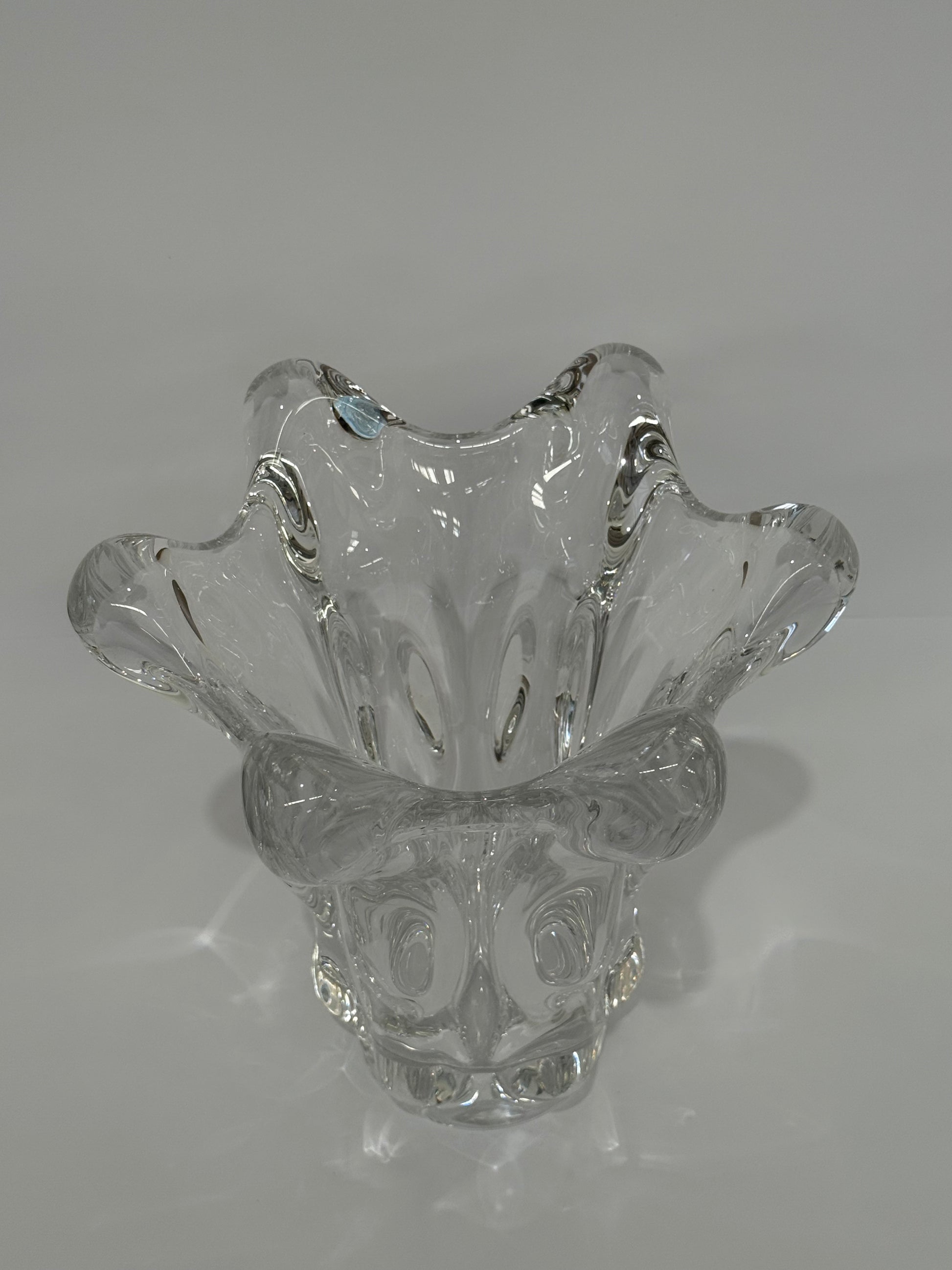 Beautiful French Art Vannes crystal vase with organic design. Large size for this style. Signed on the base.