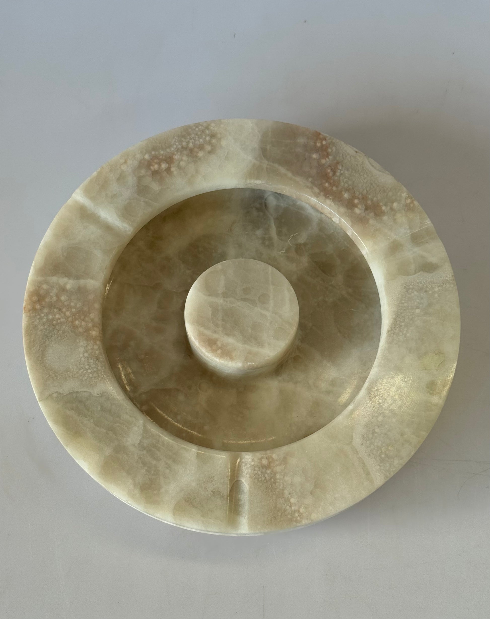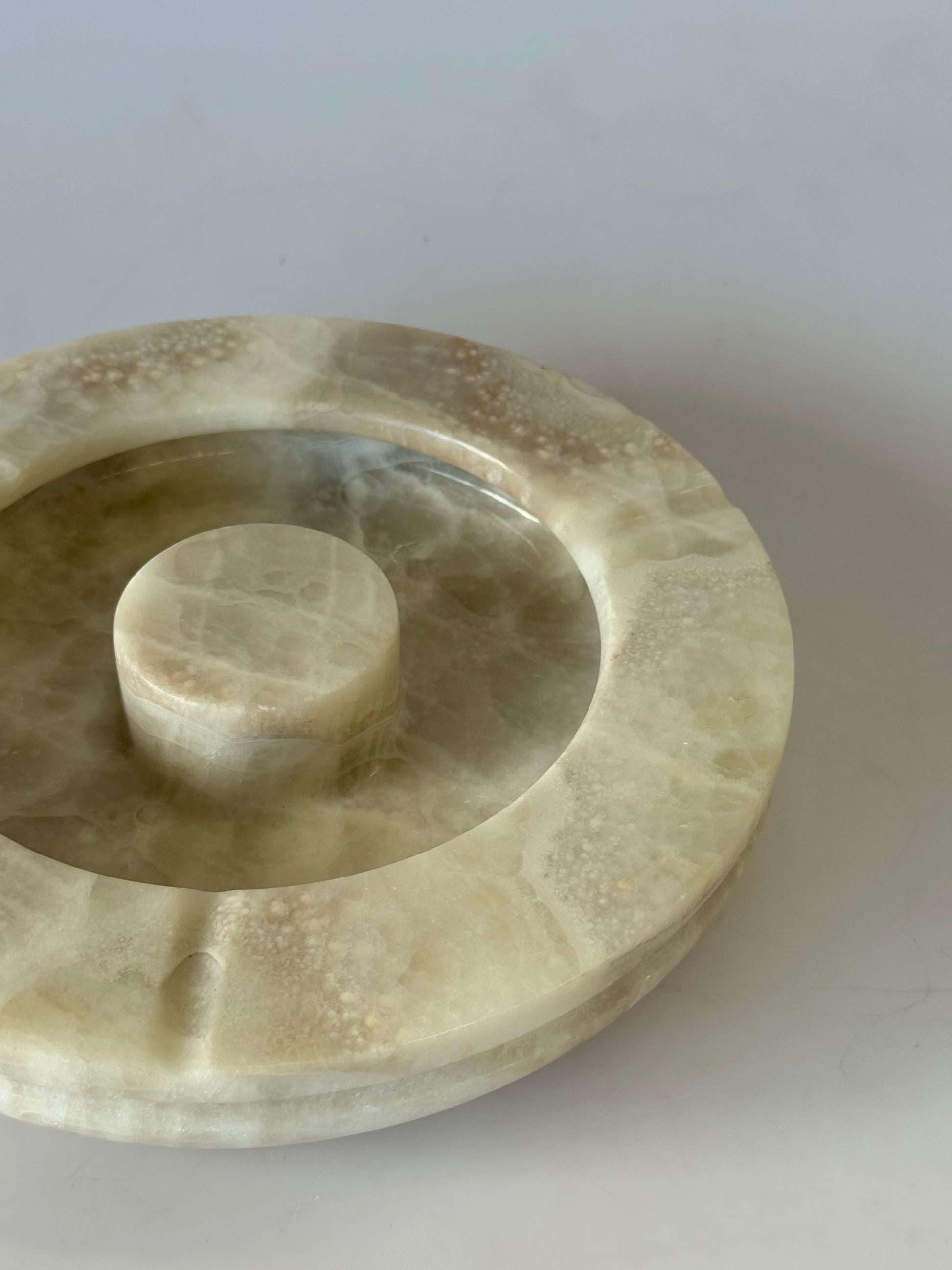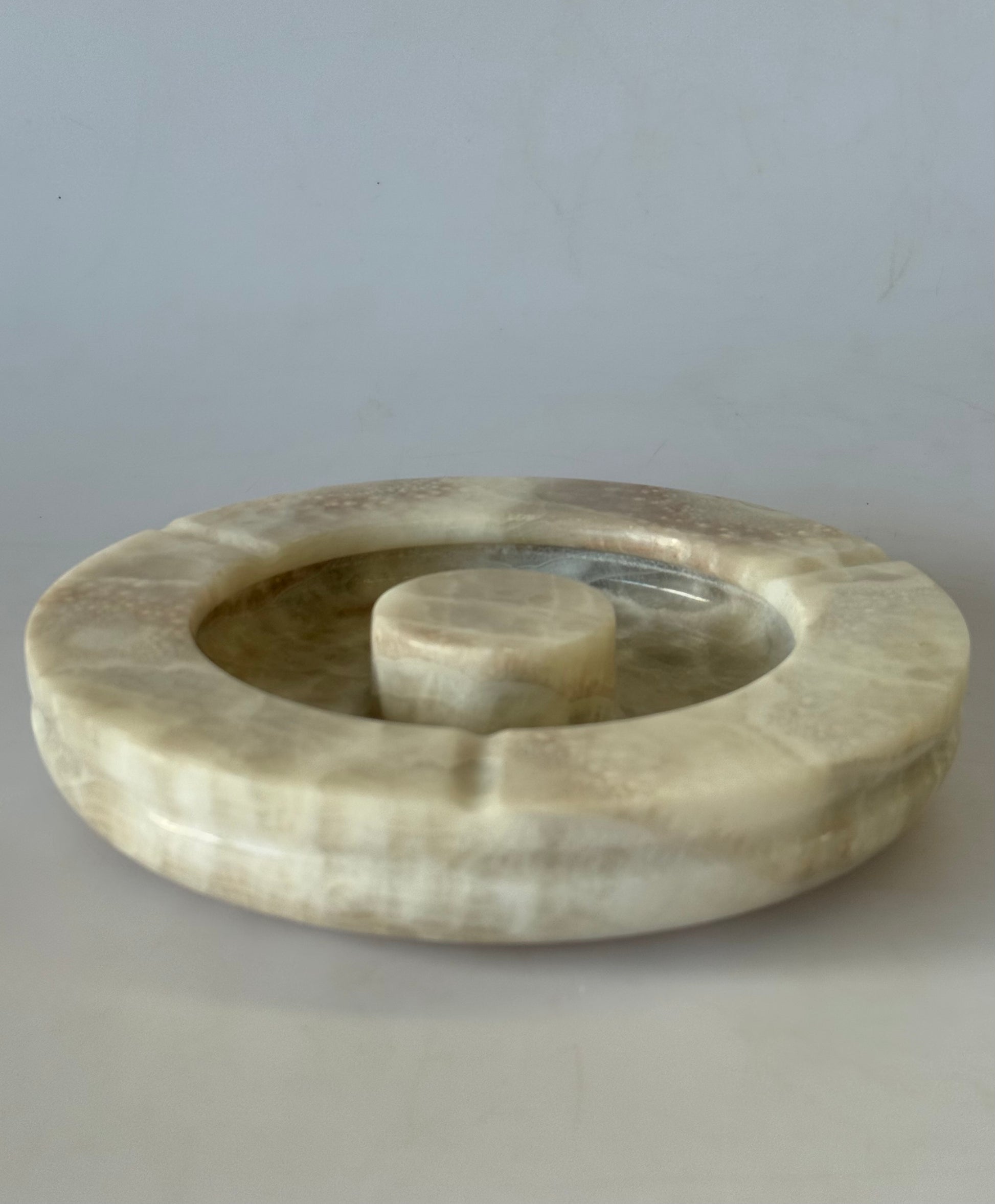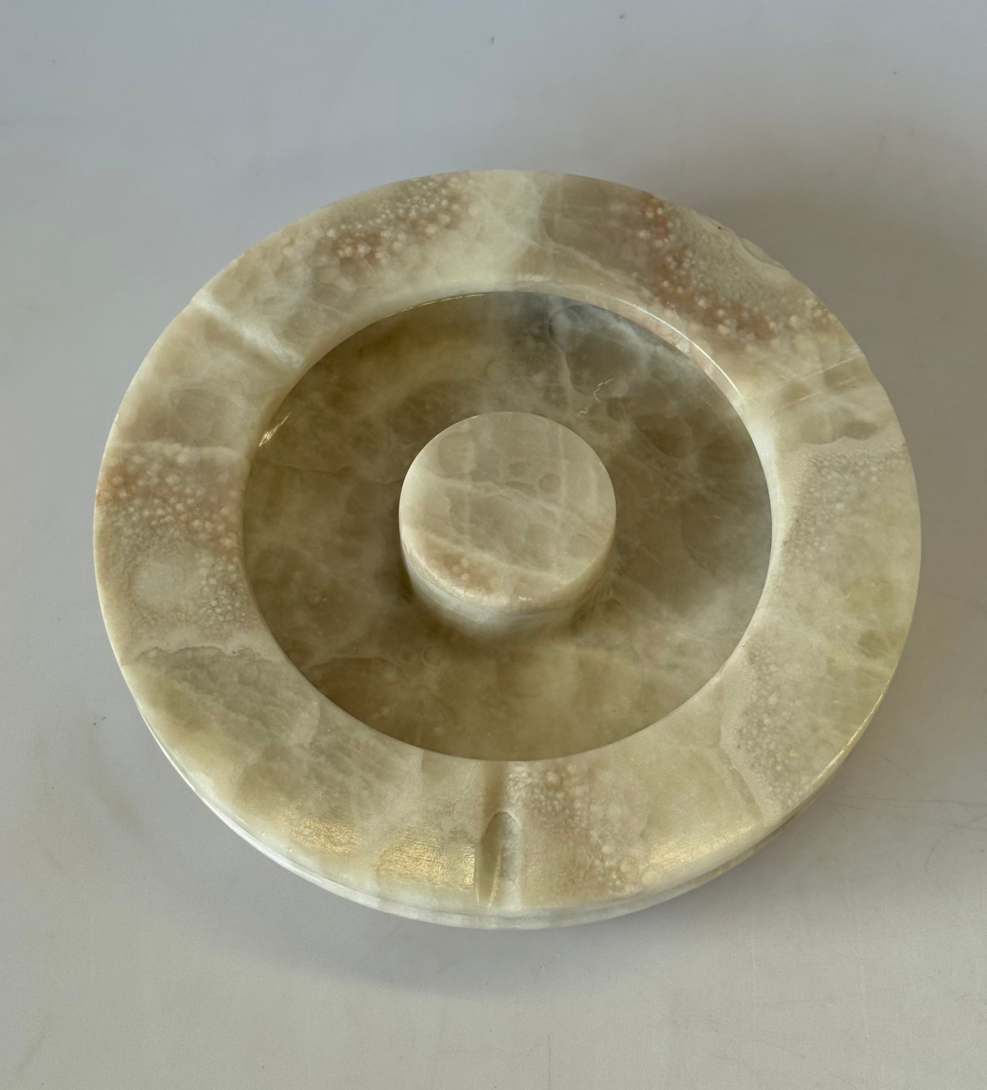 Vintage Italian onyx ashtray / centre piece in the style of Angelo Mangiarotti. Circa 1970’s. Beautiful natural shades and veins throughout. Sourced in Italy.