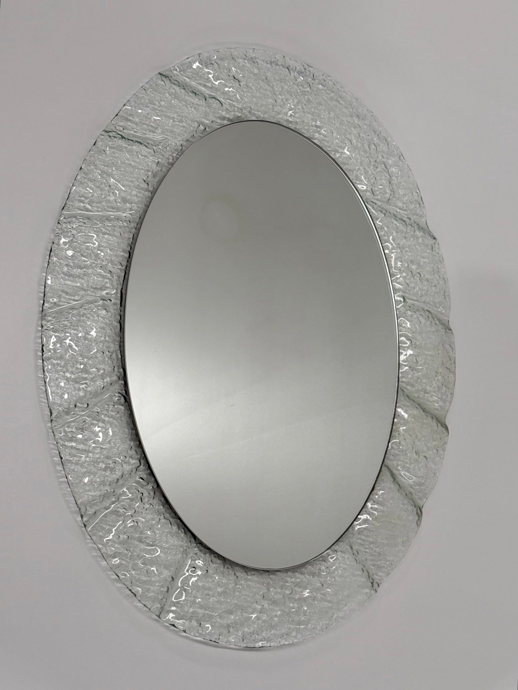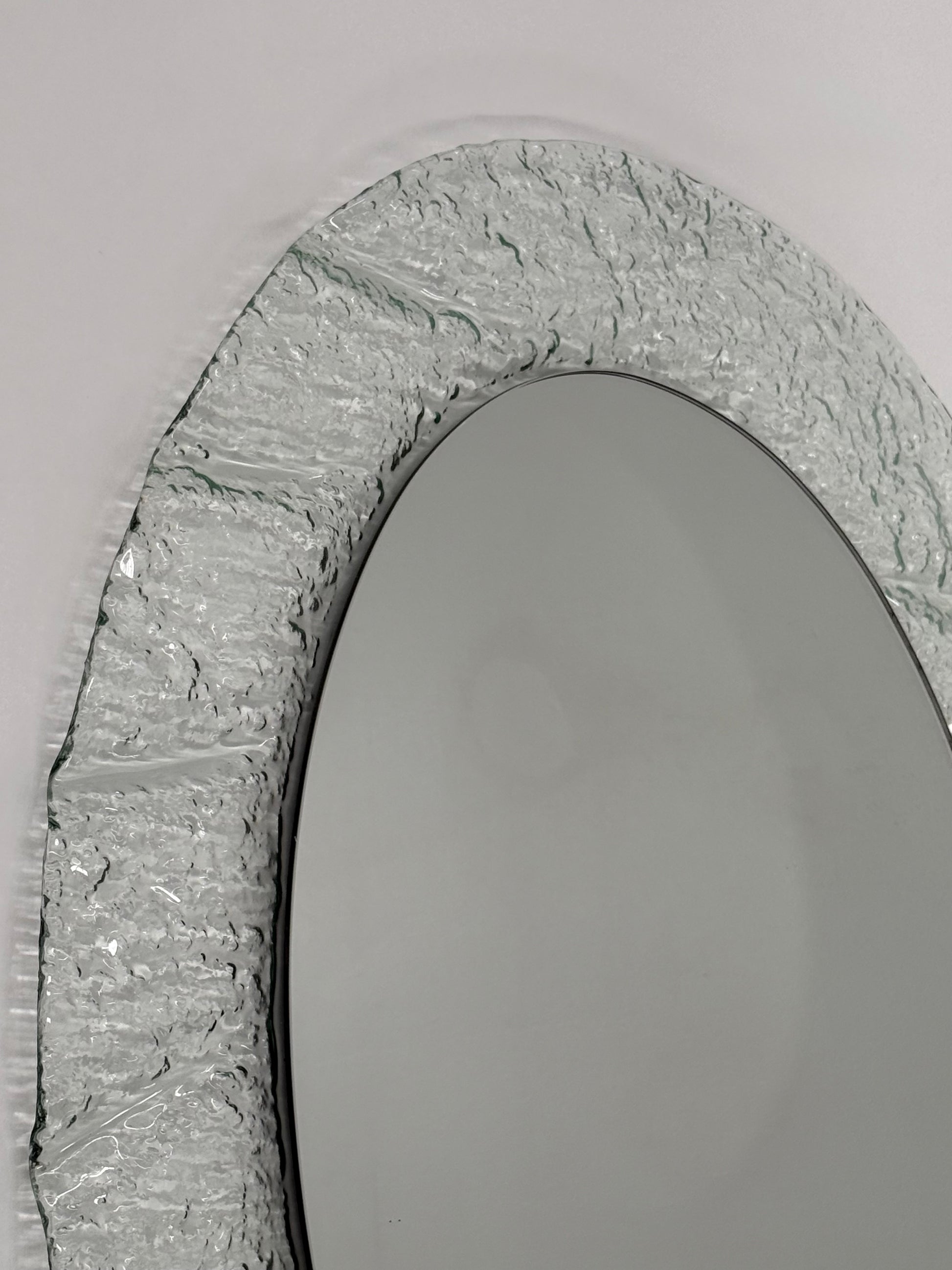 Beautiful vintage moulded Murano glass mirror. Thick moulded glass frame with an undulating wave like design. A very pale hint of green in the glass Circa 1980’s.