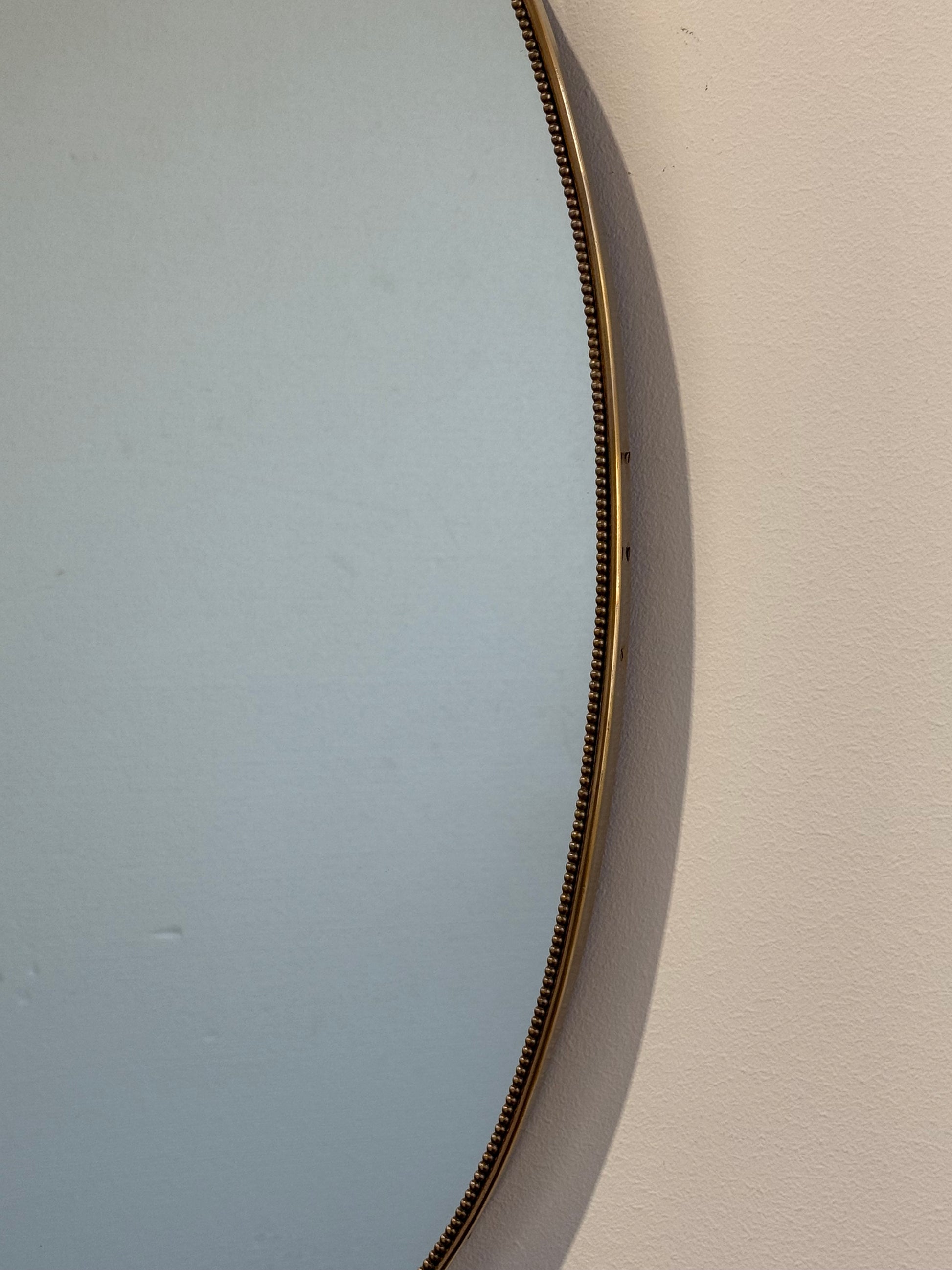 Elegant vintage Italian oval brass mirror. Circa 1950’s. Classic and sophisticated Italian design with internal beading on the internal frame