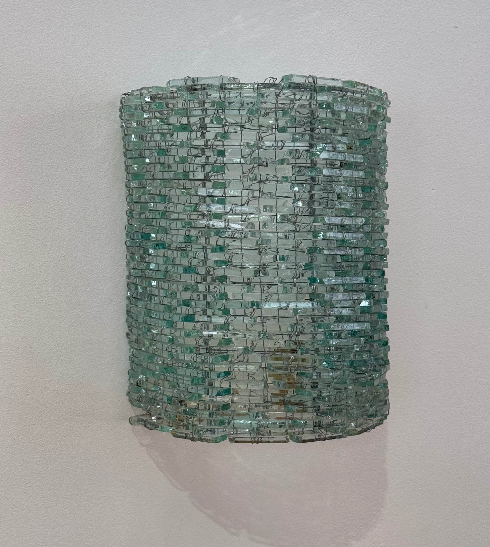 Vintage Italian Murano glass wall sconce. The lights are made from segmented pieces of glass woven on to a wire frame. Very unique design.