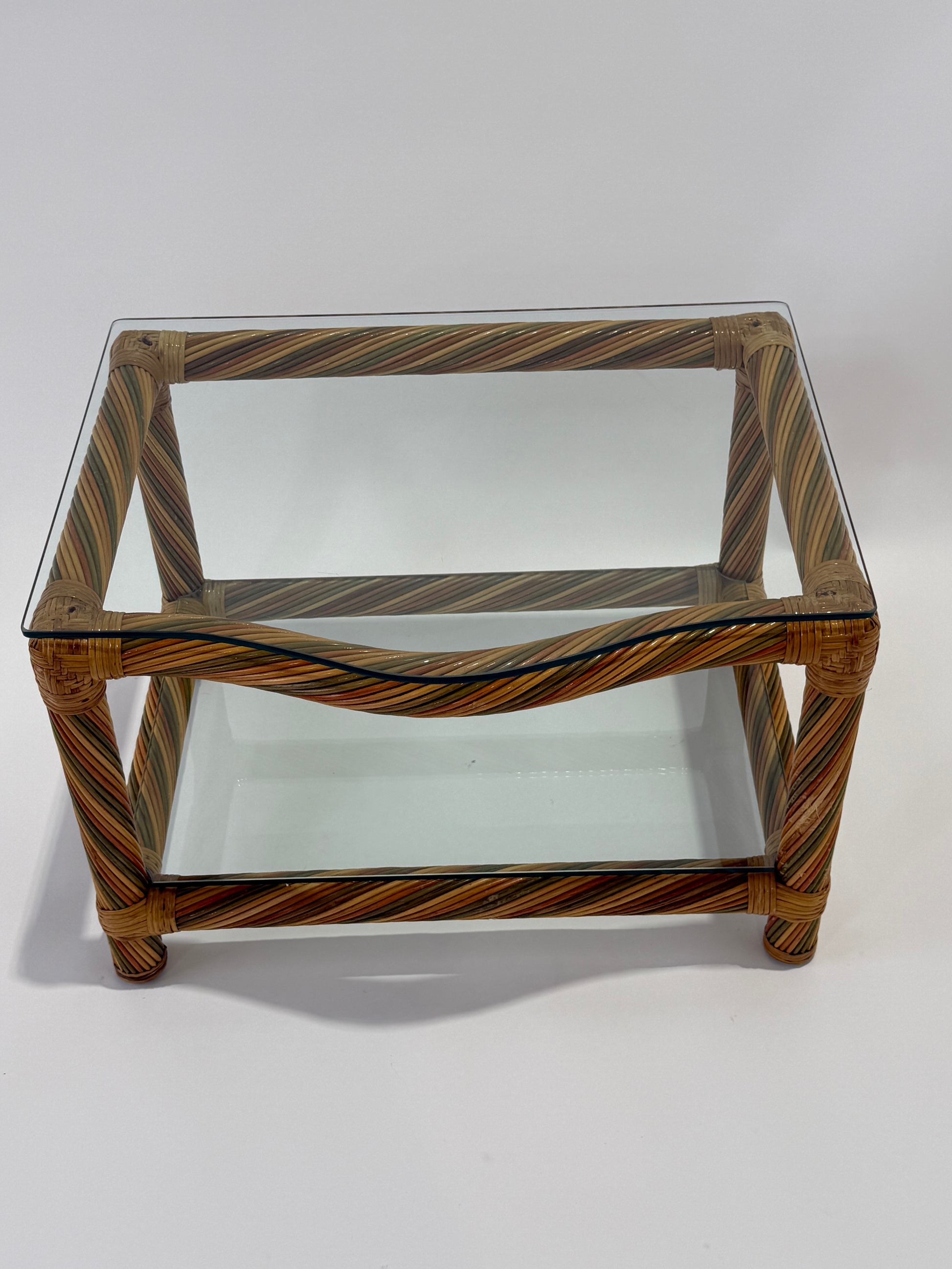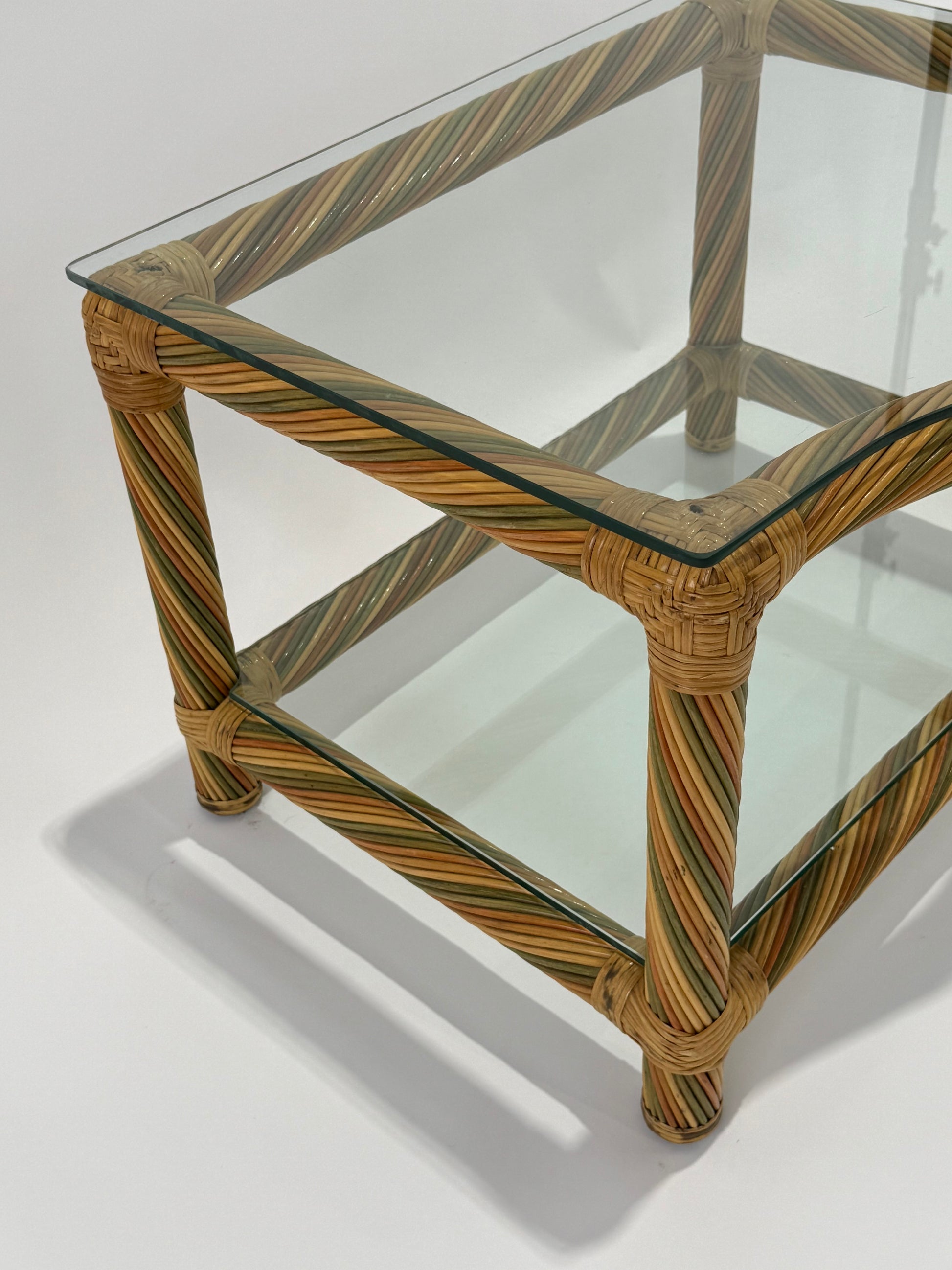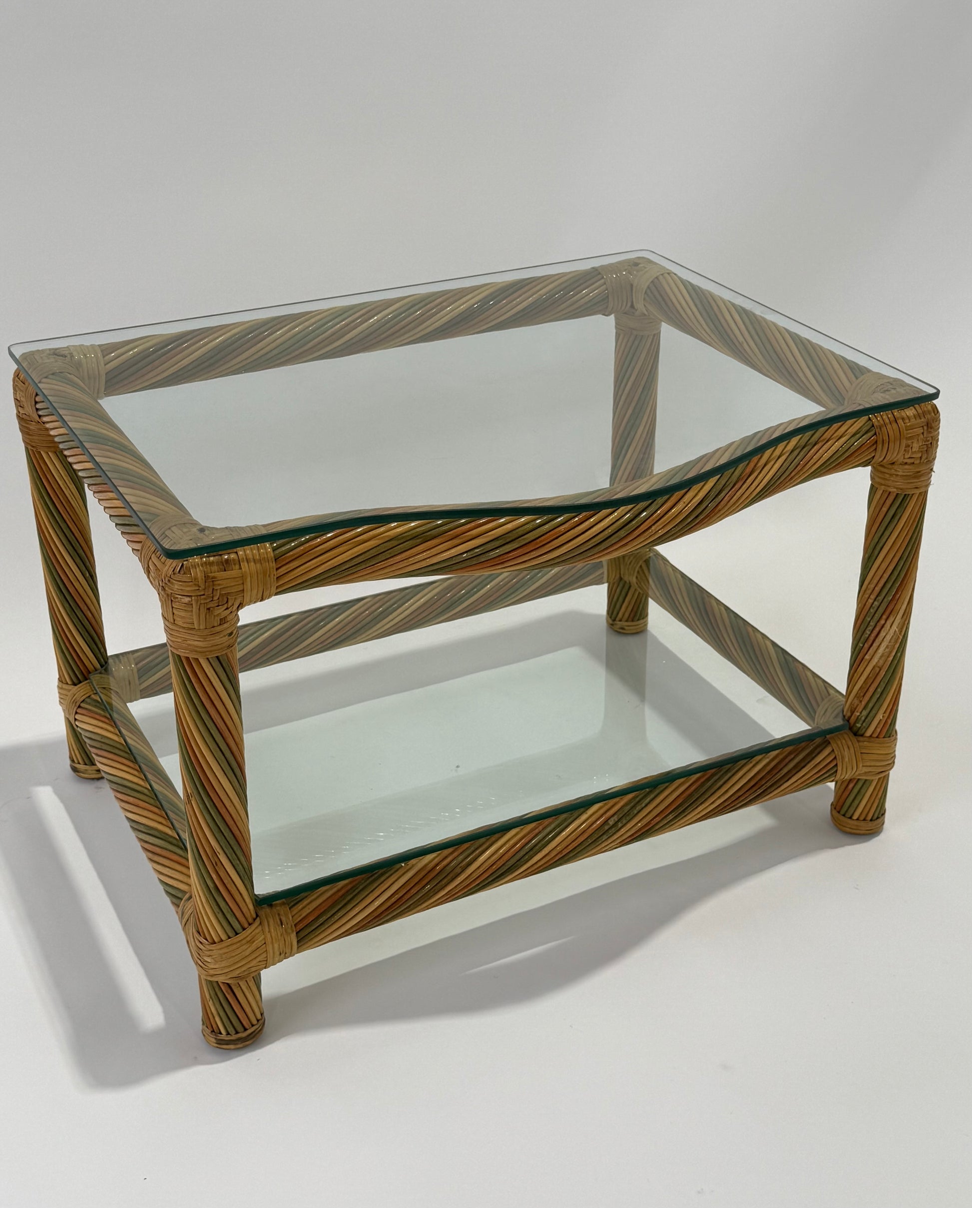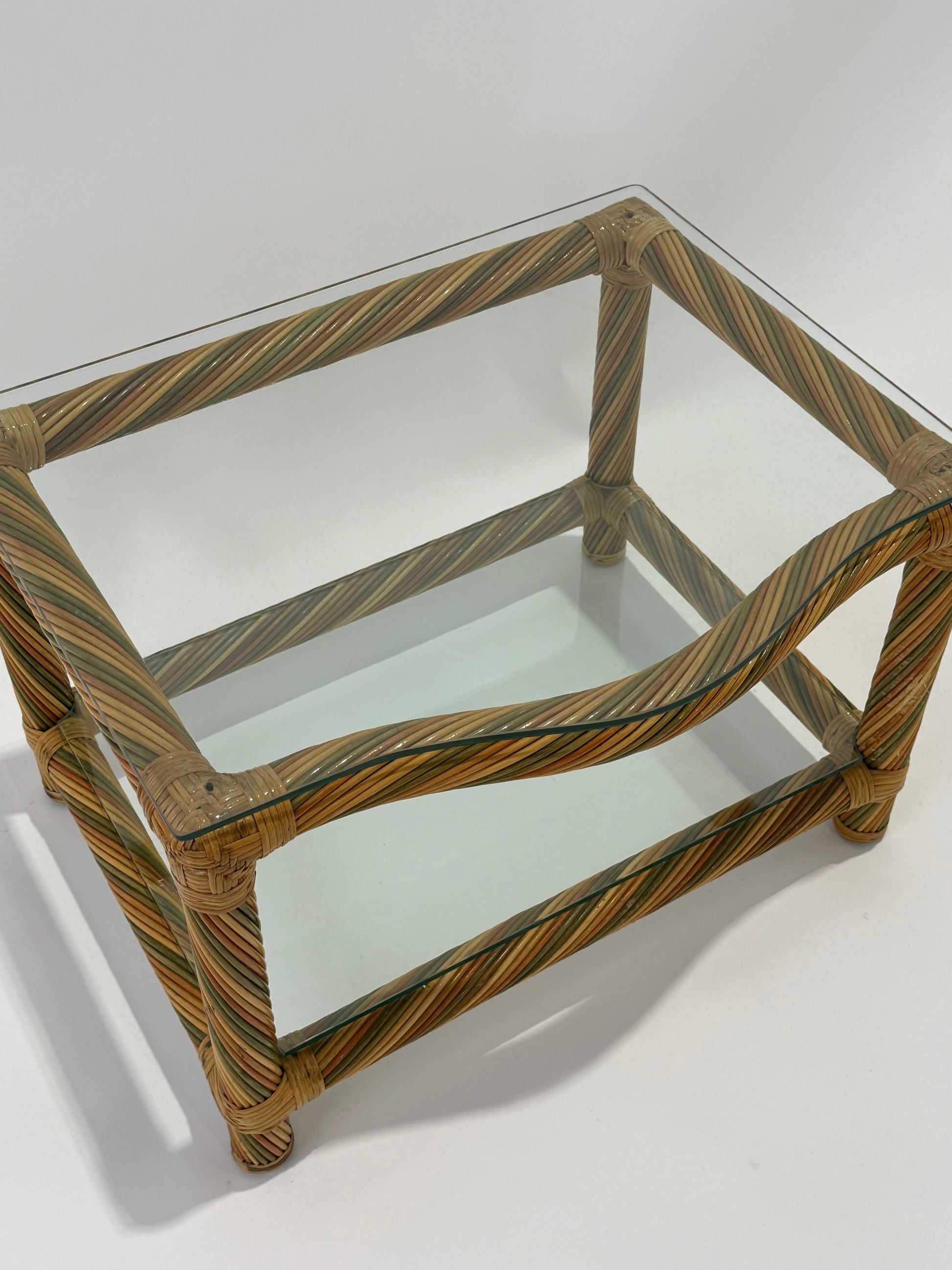 Vintage Italian multicolour wicker and glass side table produced by Studio Smania. Circa 1970’s.