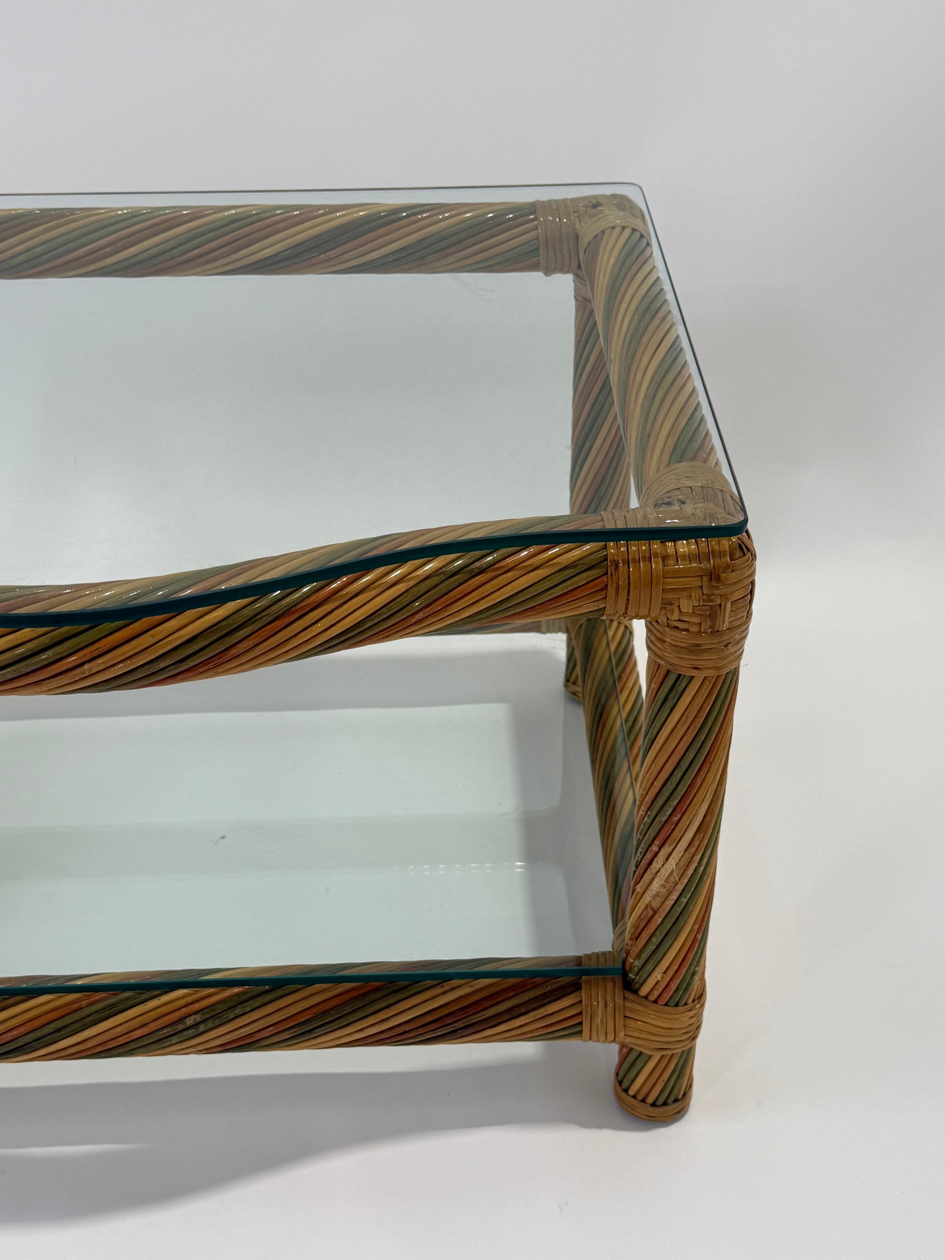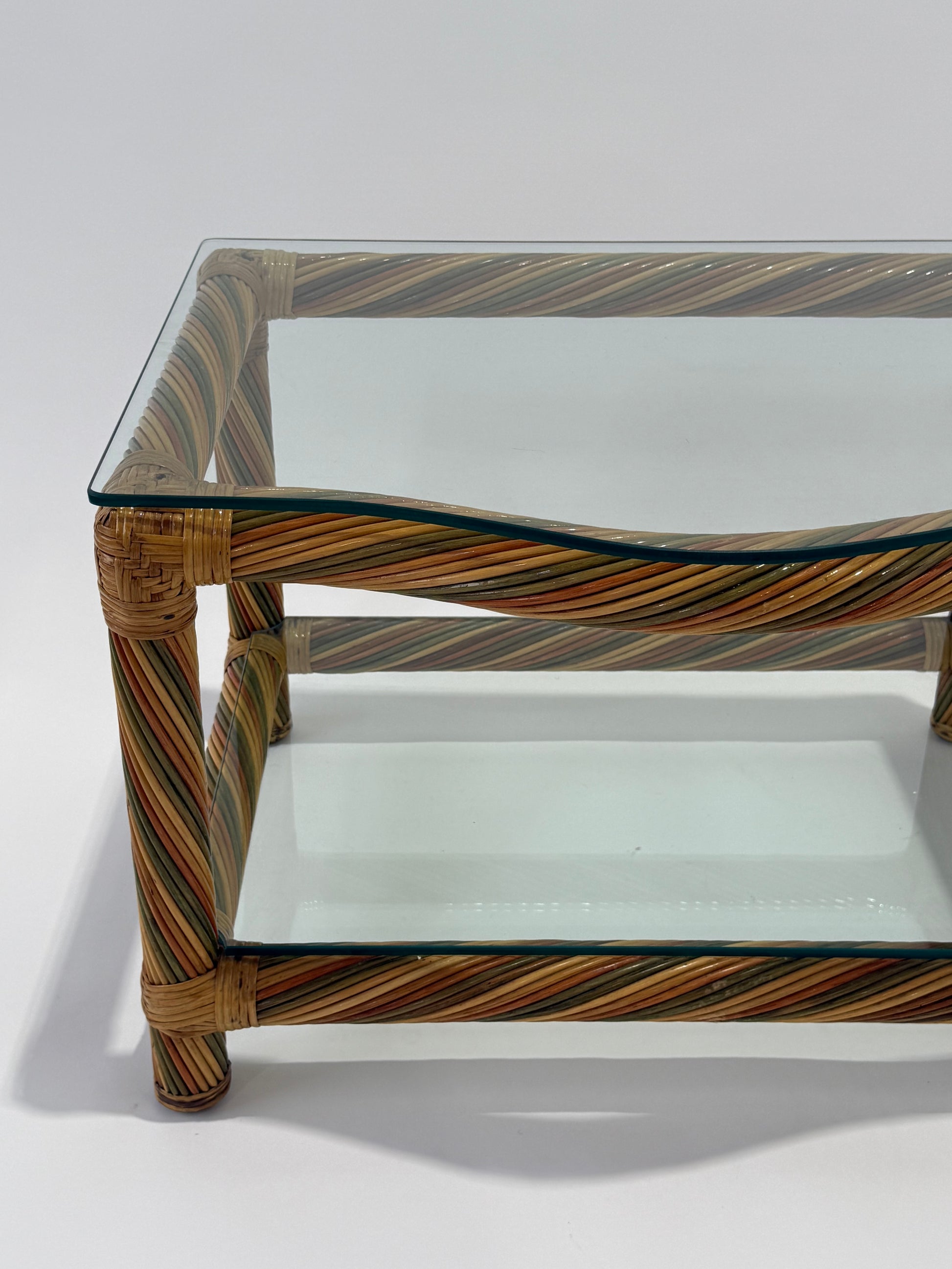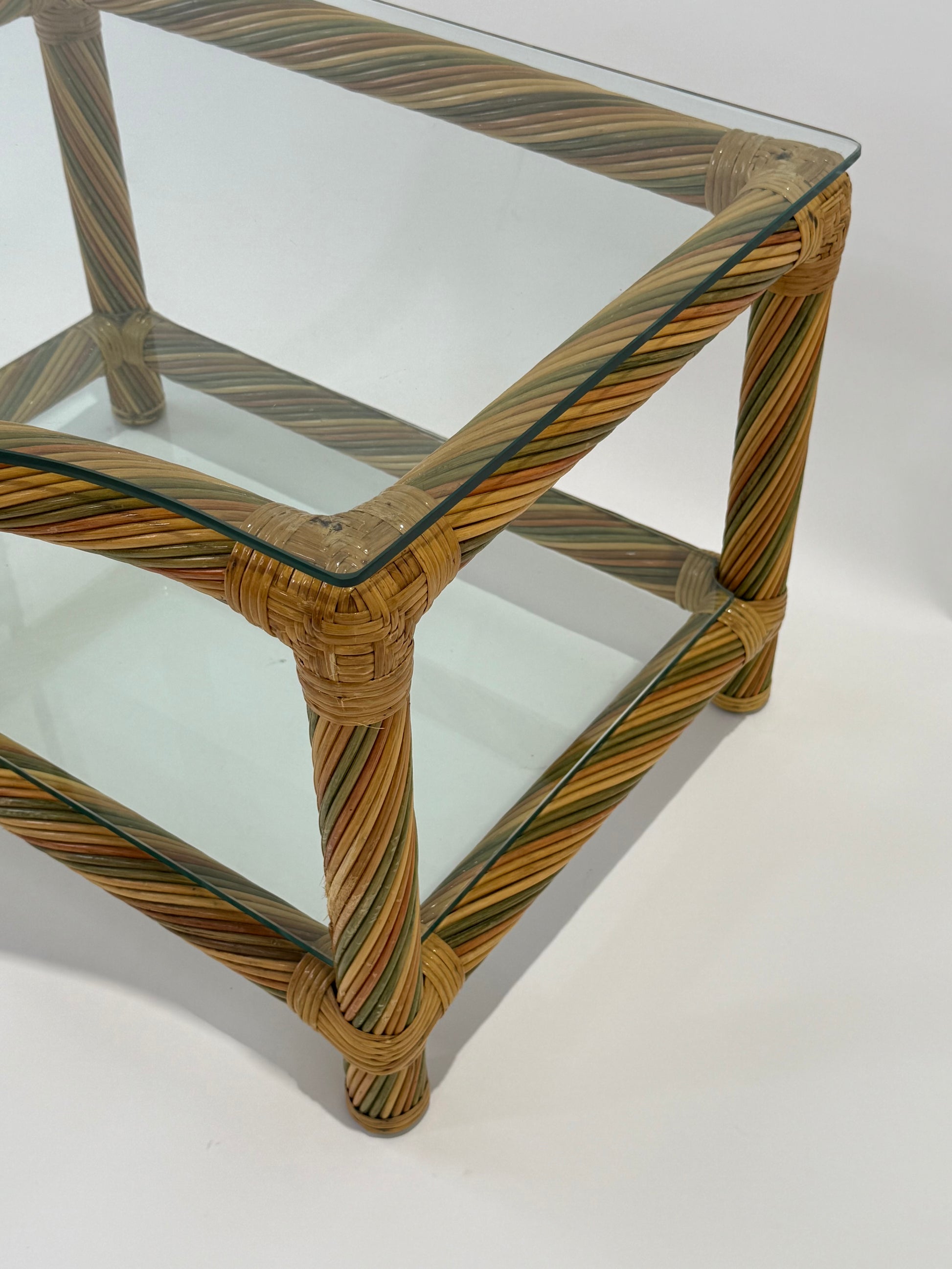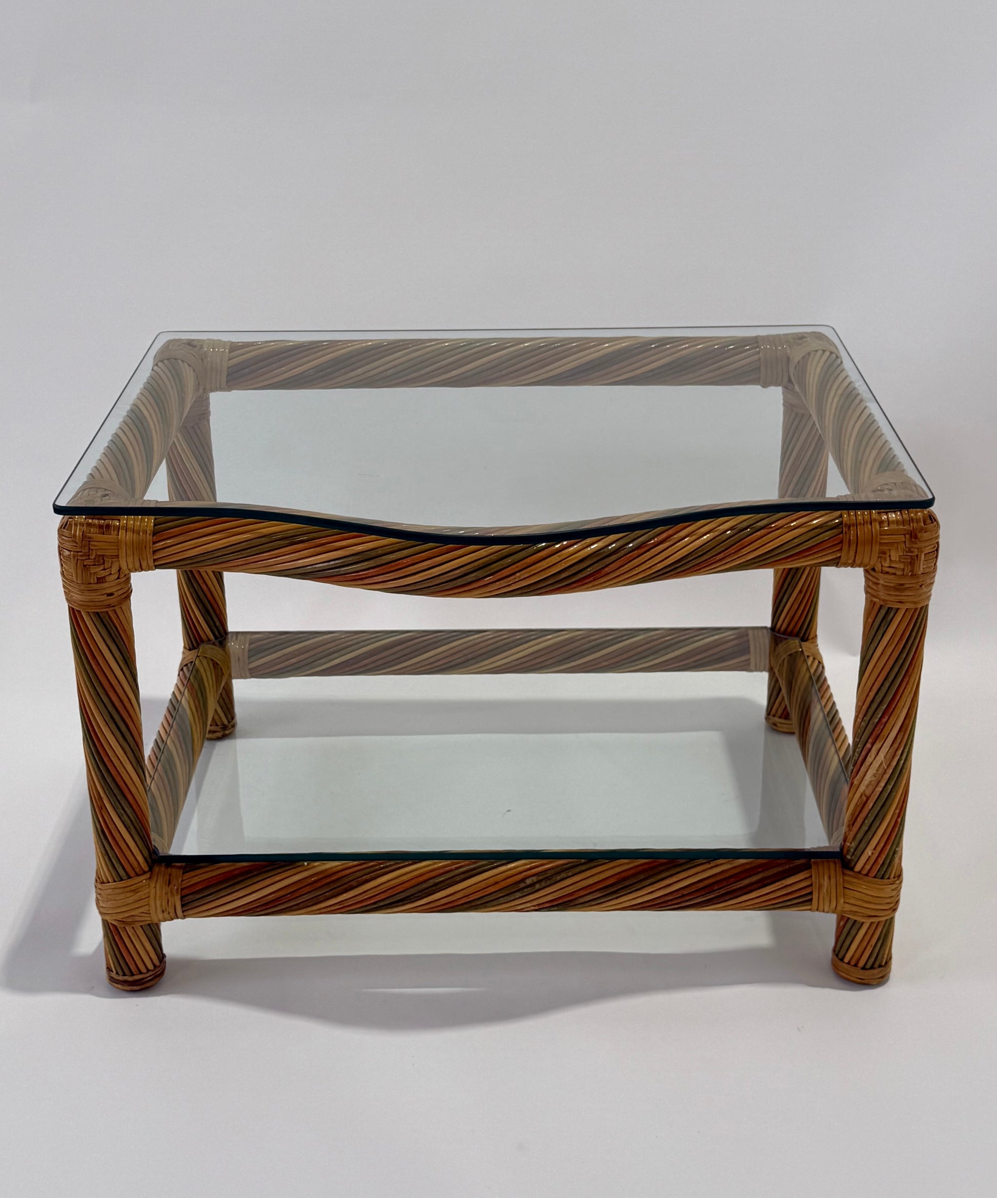 Vintage Italian multicolour wicker and glass side table produced by Studio Smania. Circa 1970’s.